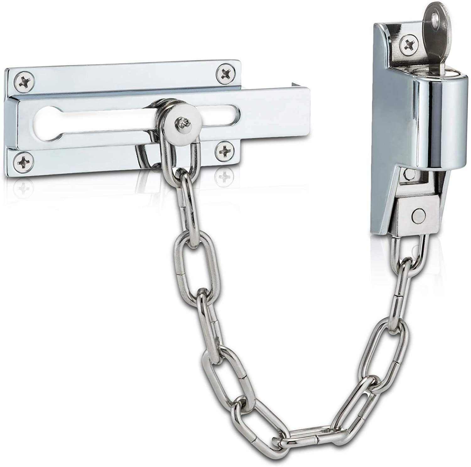 Extra Security LOCKING DOOR CHAIN & Keys Heavy duty Safety door Guard Lock Catch