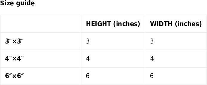 3″×3″ ,4″×4″ ,6″×6″ |