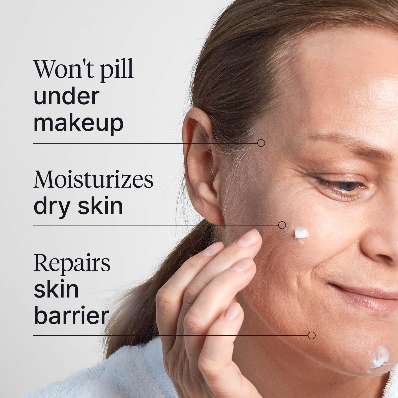 For skin that feels tight, this formula’s glycerin, sodium lactate, and caprylic/capric triglyceride work to attract and lock in moisture, leaving your skin feeling refreshed.