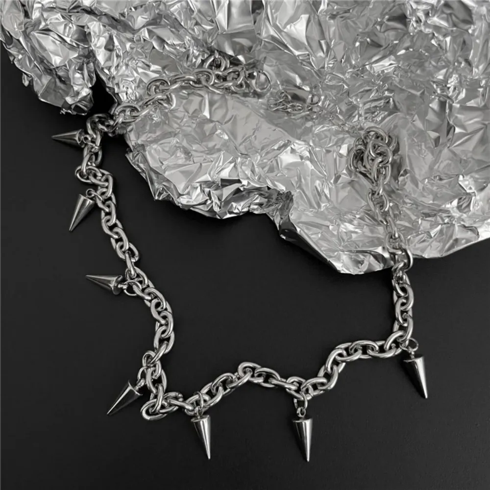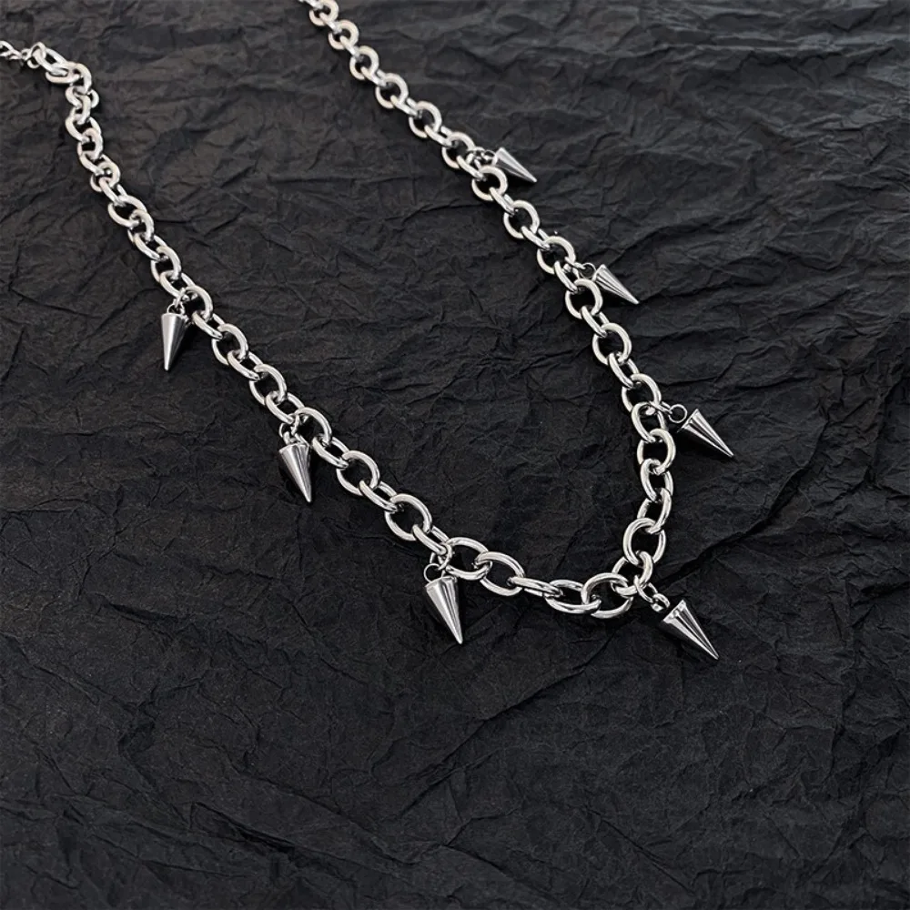 Fashion Tassel Rivet Design Necklace Women Men Silvery Alloy Collarbone Chain Daily Clothing Accessories