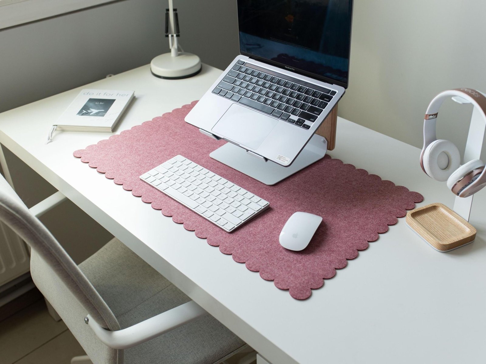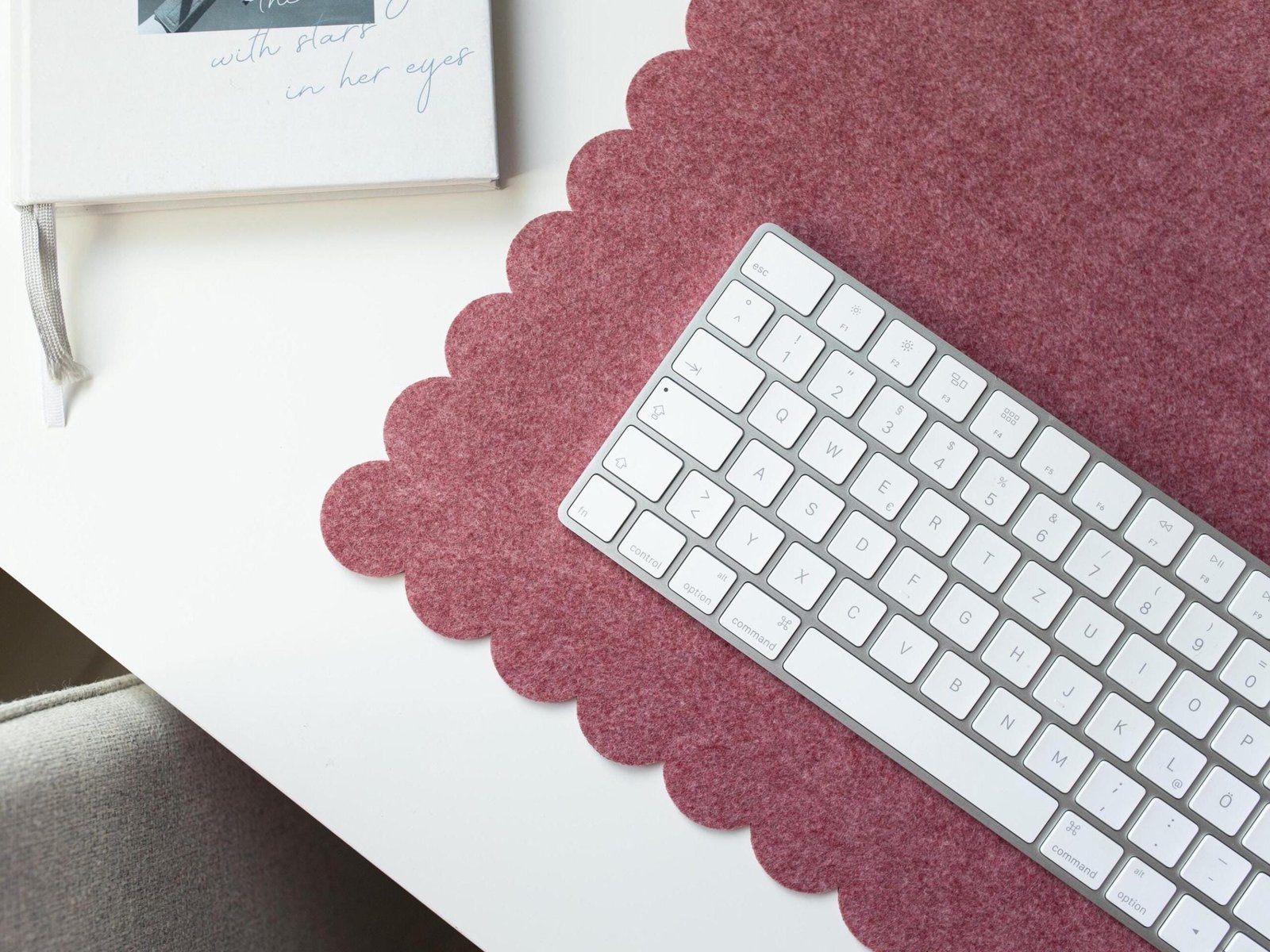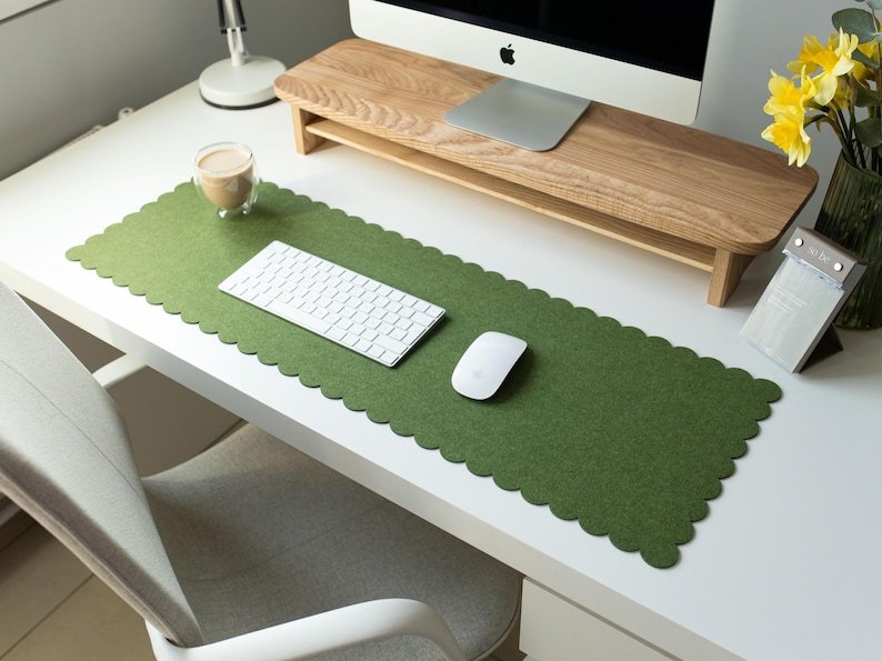 Felt Desk Mat Scalloped Edges, Green Desk Pad Aesthetic, Large Cute Mousepad Sister Gift, Employee Appreciation Gift, Women Desk Accessories