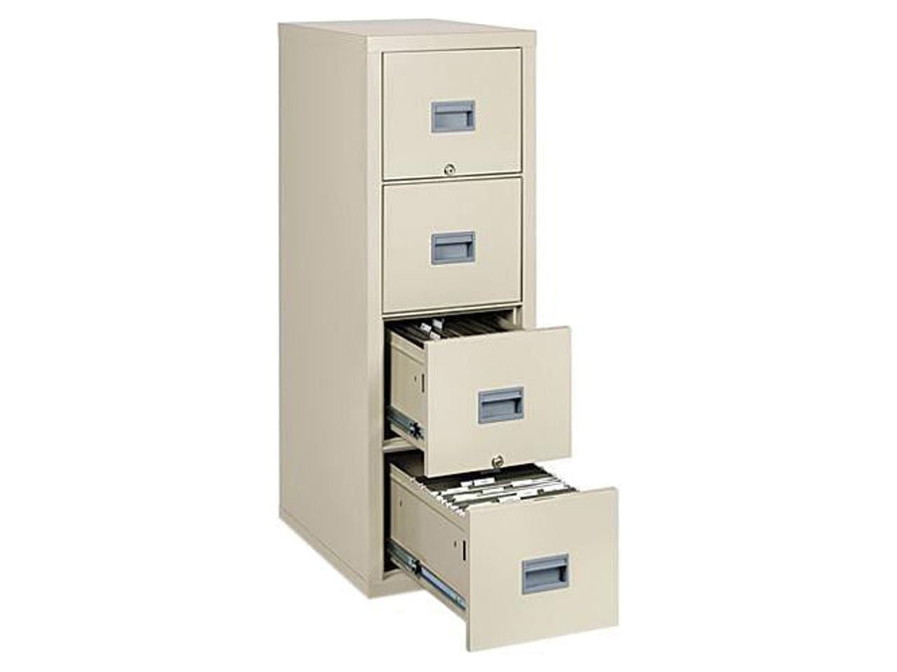 Value-priced fire protection for all your important files. Insulated steel construction with a durable powder coated finish. UL one-hour fire and impact tested. Locking drawers operate on full-extension ball bearing slides. Insulation between drawers makes each drawer a separate, fireproof unit.