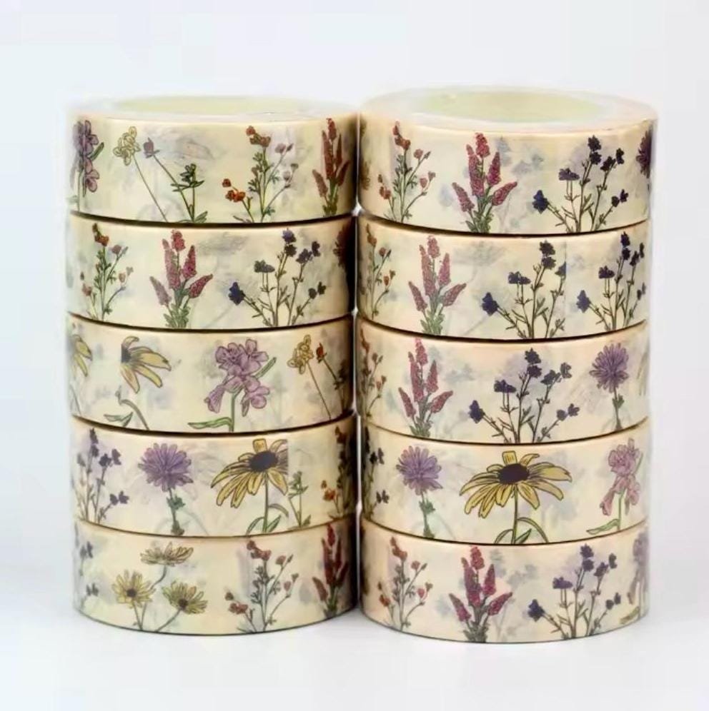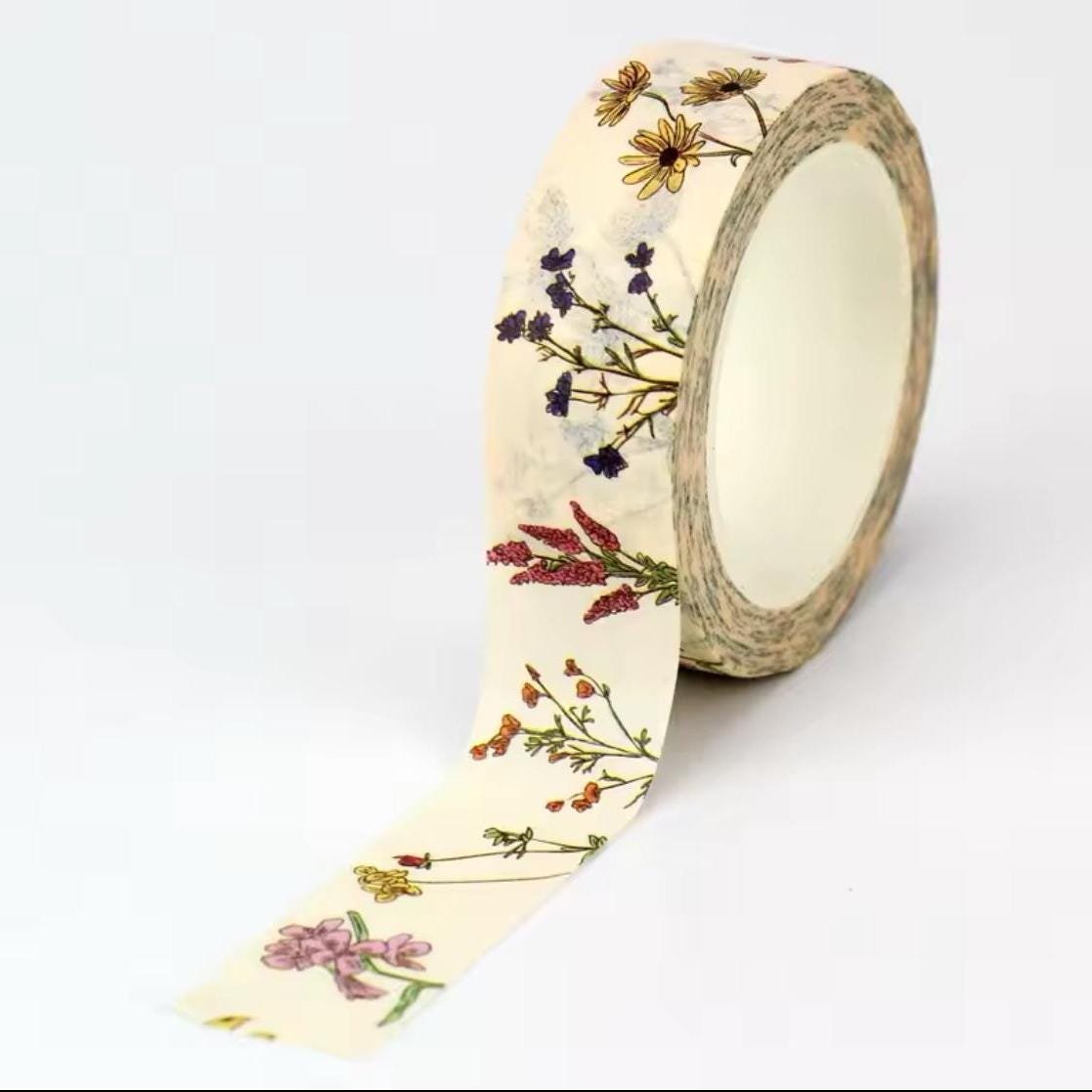 Floral Washi Tape – 15mm x 10M – Scrapbook Supplies – Decorative Washi Tape – Junk Journal Supplies – Penpal Supplies – Craft Supplies