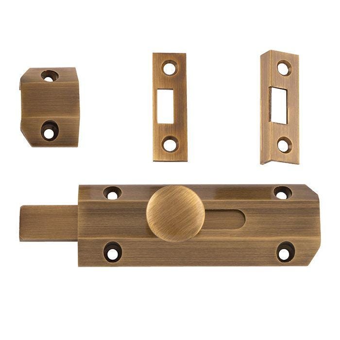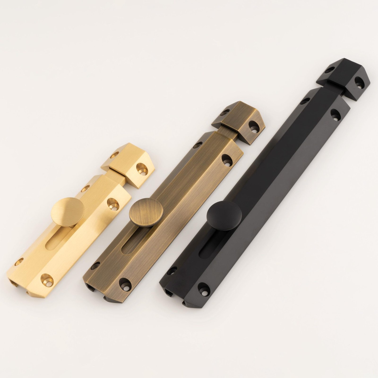 Flush Surface Brass Bolt Lock, Flat sliding barrel offering more security than a conventional barrel bolt. Smooth operation. Heavy weight