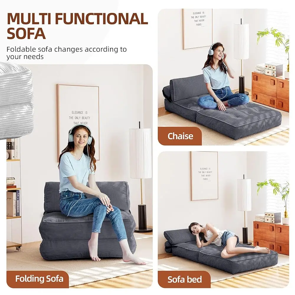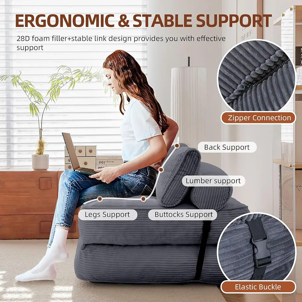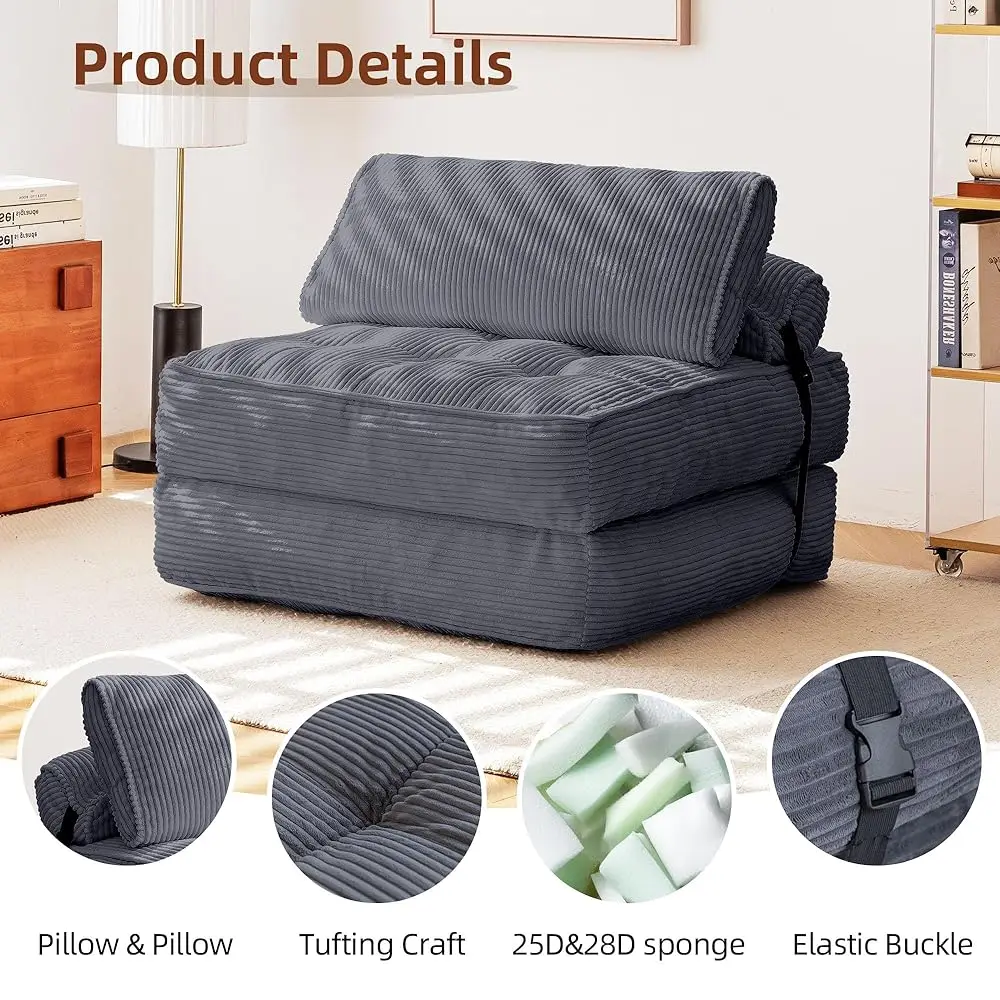 Folding Sofa Bed, Convertible Sleeping Chair With Backrest Support And Soft Corduroy Fabric,Fold Couch Bed With Pillow For
