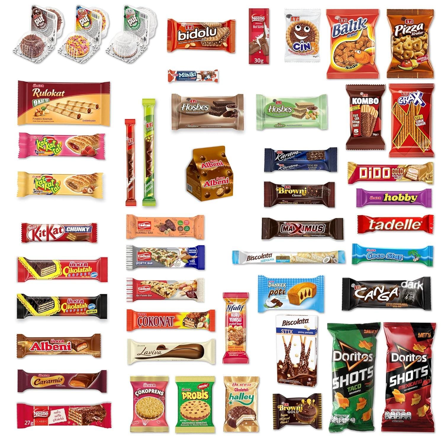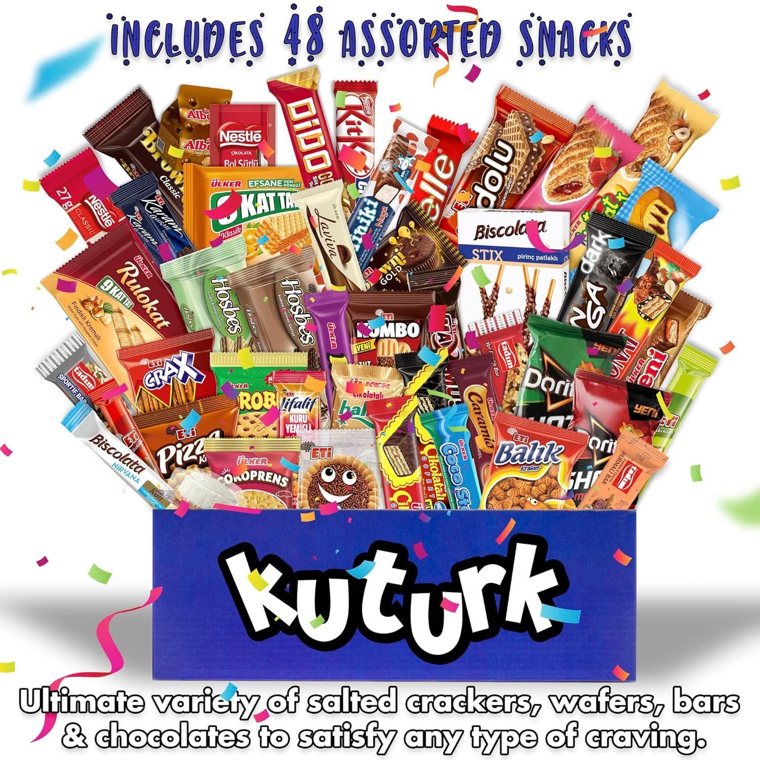 Foreign Snack Crate – 48ct Turkish Snacks – Foreign Treats Candy Pack for Dorm Office Movie Fun Snack Box for Adults College Students