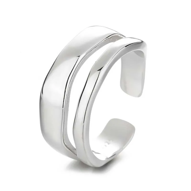 Foxanry Minimalist Silver Color Finger Rings for Women New Fashion Creative Design Double-layered Geometric Party Jewelry Gifts