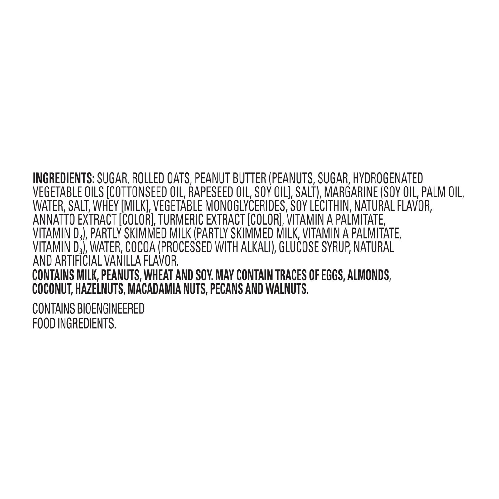 - Made with sugar, peanut butter, rolled oats, cocoa, and other high quality ingredients