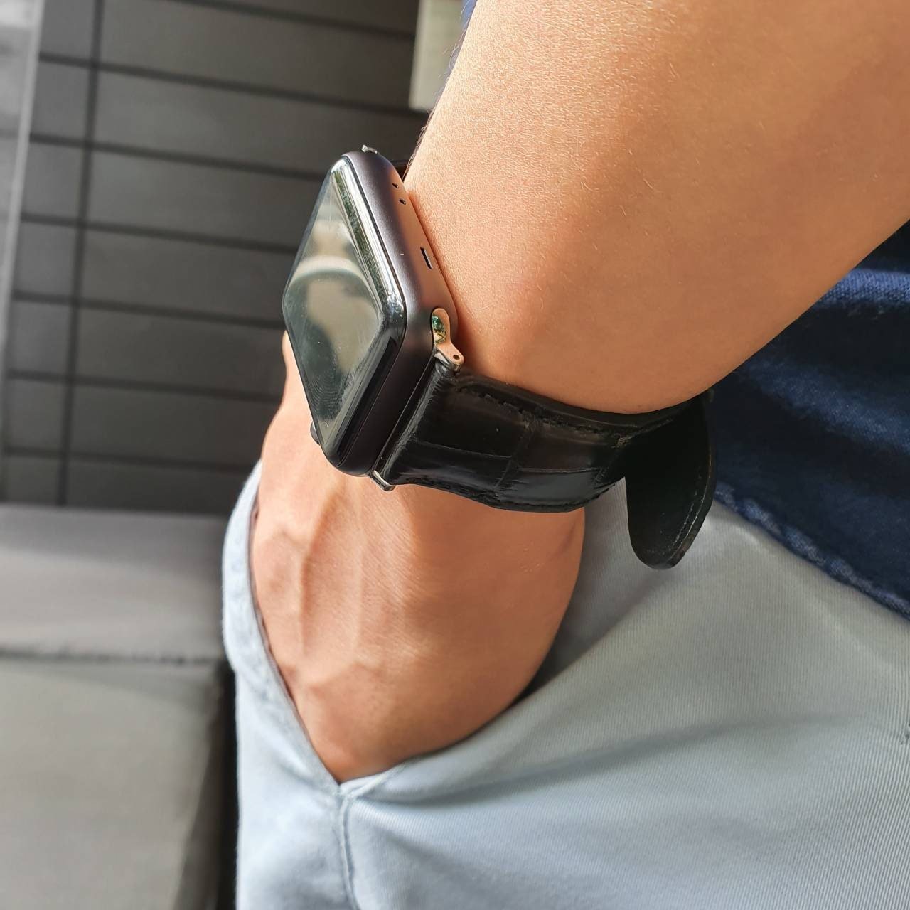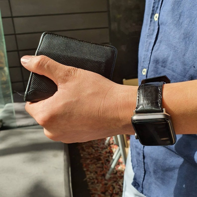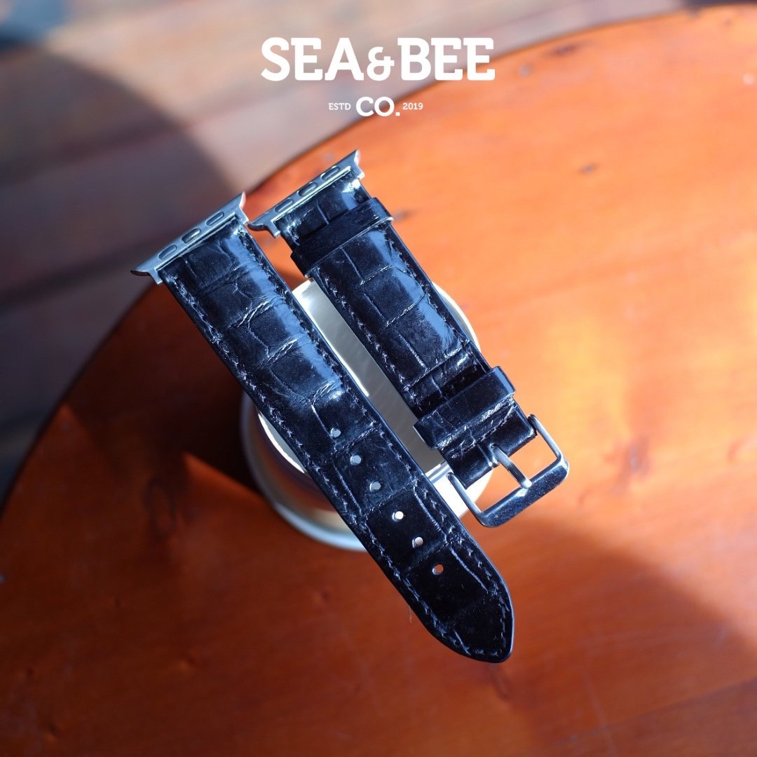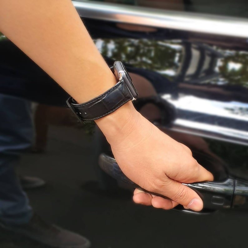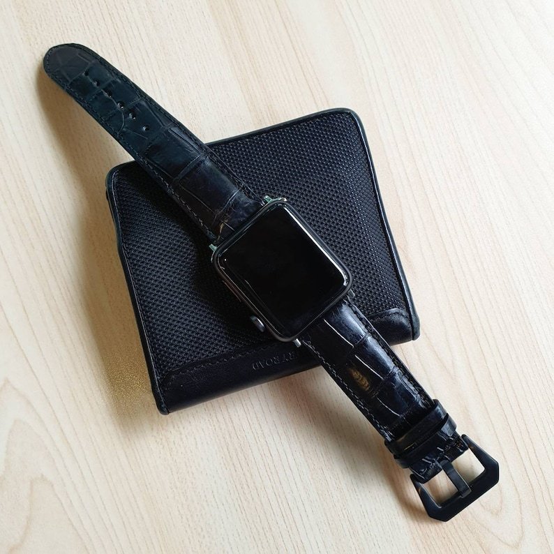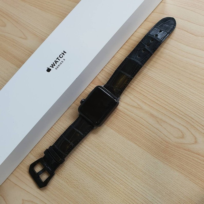 Full grain crocodile leather calfskin Apple Watch Series 1 2 3 4 5 6 7 8 Ultra SE watch strap watch band pitch black Birthday gift