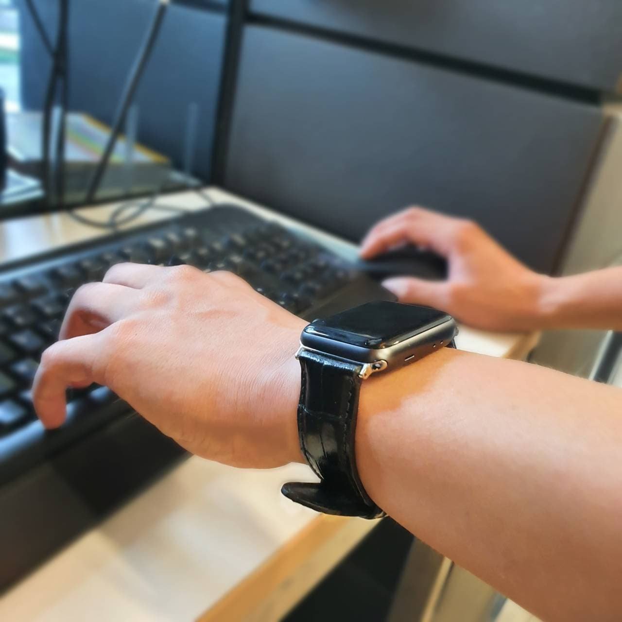 Crafted from full grain calfskin crocodile leather and dyed with a meticulous process, the watch strap has an intricate texture of variable scales, ensuring no two straps look alike. With its shiny finish , it is a luxurious accessory for your Apple watches and available in a range of trending colors.
