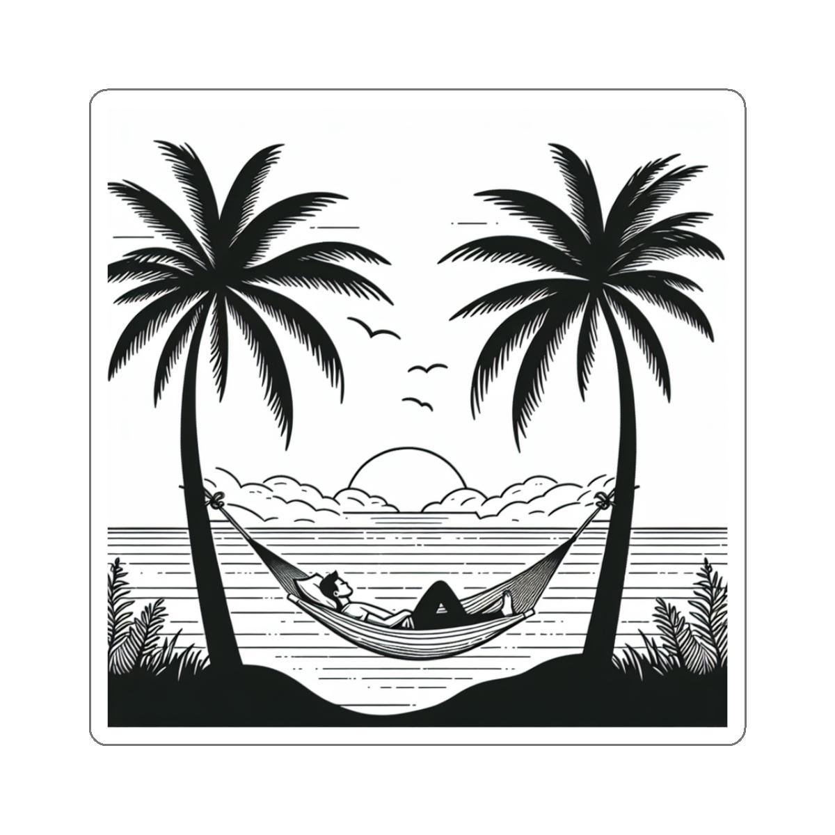 Display your laid back attitude with this man in a hammock sticker perfectly cool for your water bottle, cooler or glass. A kiss-cut provides you with the ultimate flexibility for implementing your vision—this method cuts the sticker into any shape you desire, while leaving the back intact so that it can be smoothly peeled off the page.