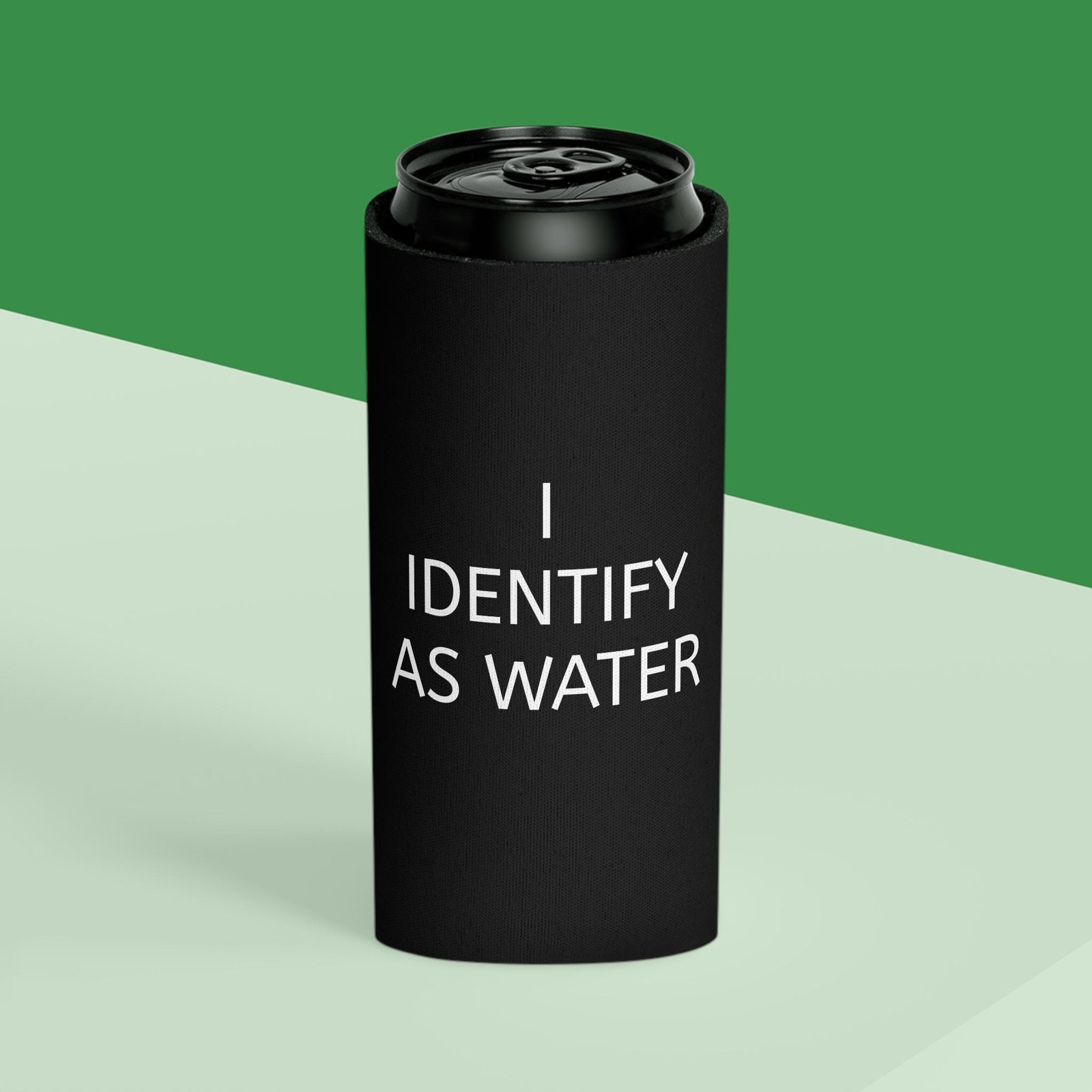 Funny Can Cooler – I IDENTIFY AS WATER, Ideal for Parties, Weddings, BBQs, Beach Days, and Gift for Humor Lovers