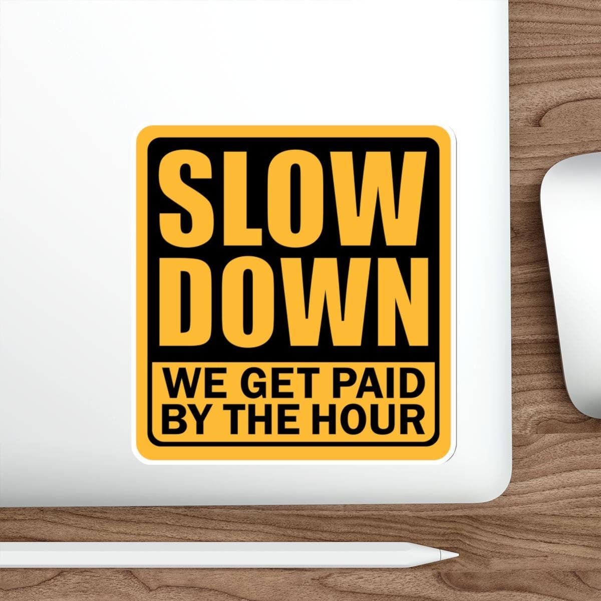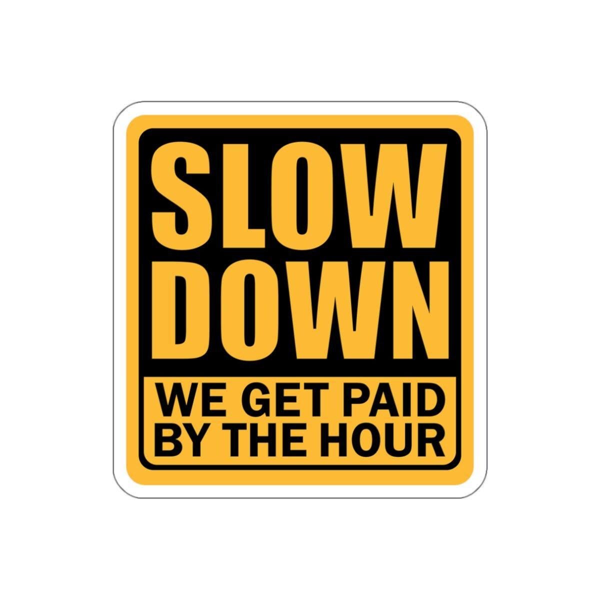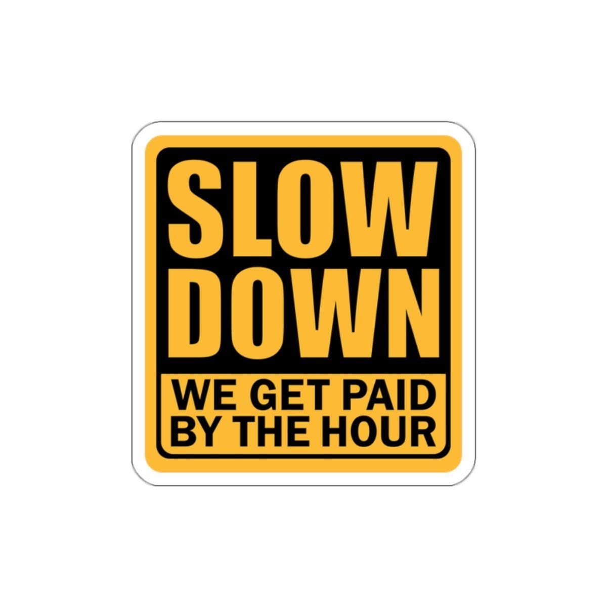 Funny Construction worker, Hard Hat Cooler, Slow Down Meme Sticker vinyl Indoor Outdoor laptop water bottle car Waterproof Die-Cut Sticker
