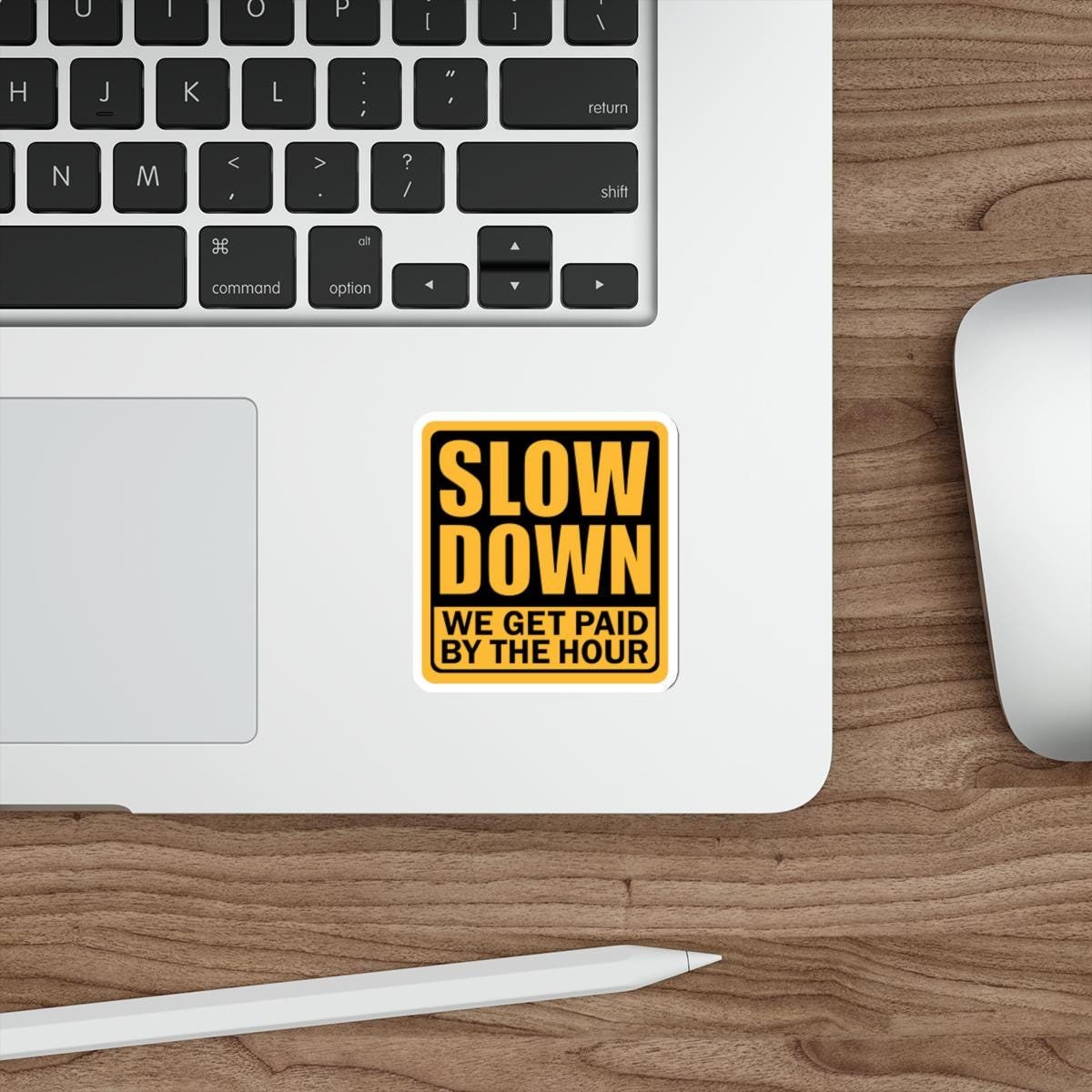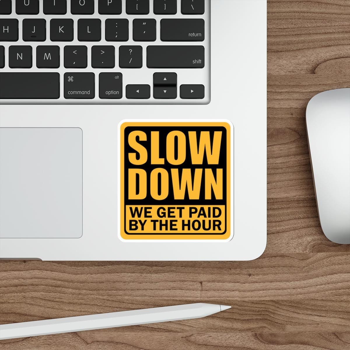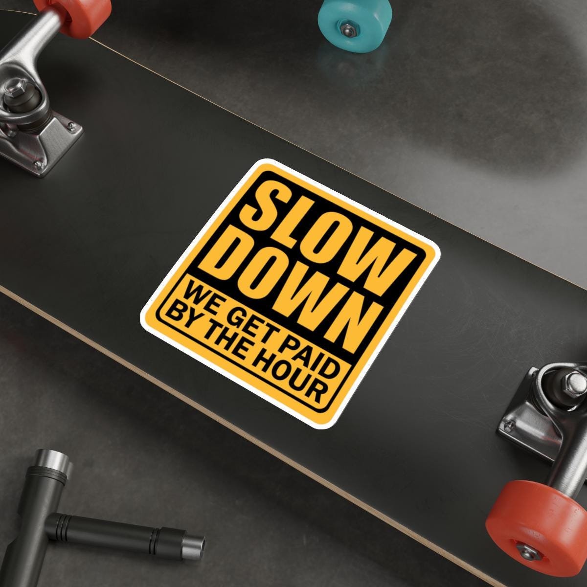 Funny Construction worker, Hard Hat Cooler, Slow Down Meme Sticker vinyl Indoor Outdoor laptop water bottle car Waterproof Die-Cut Sticker