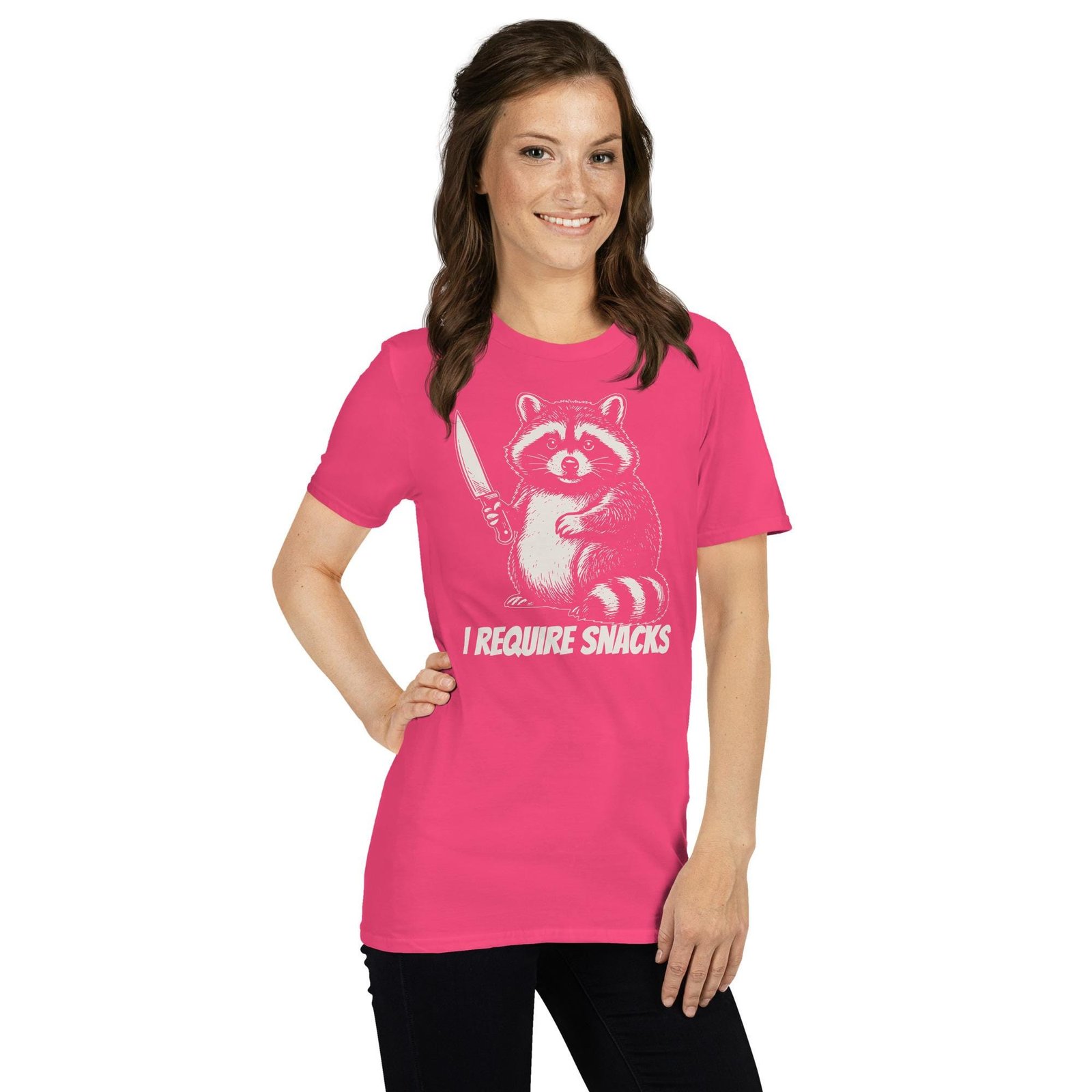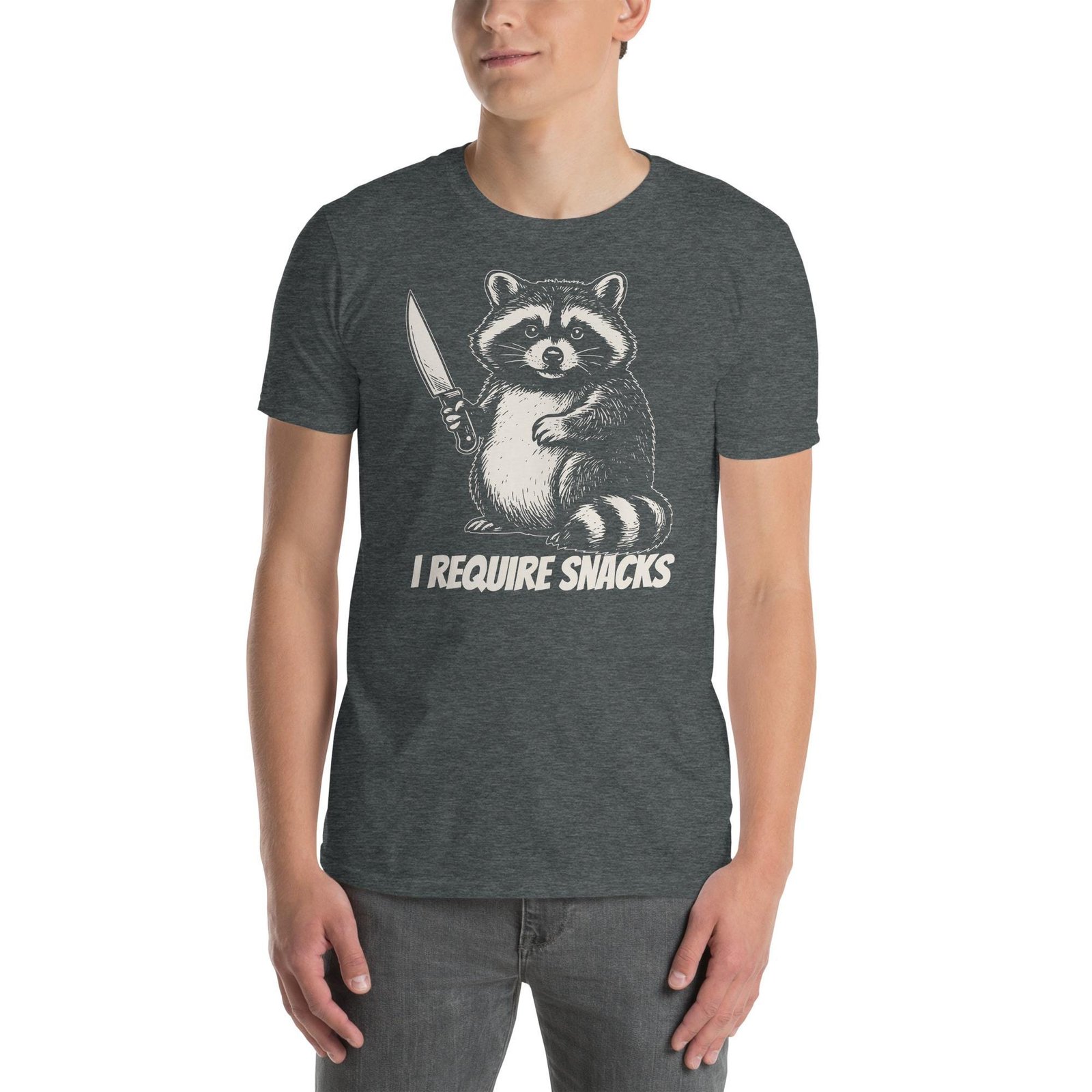 Funny Raccoon T-Shirt | I Require Snacks Trash Panda Meme Shirt | Hilarious Snack Lover Gift Idea for Foodie Girlfriend | Her Food Humor Tee