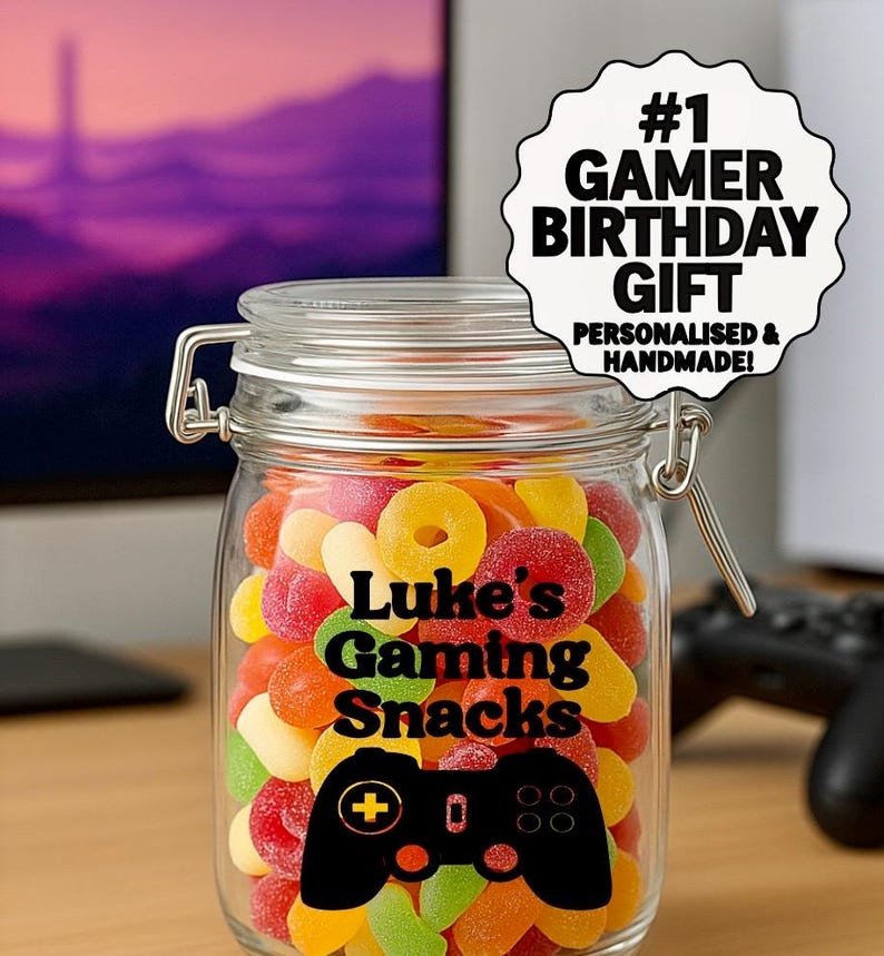 Gaming Snack Jar Label – Personalised Gamer Vinyl Sticker – Kids Party Favour – Custom Name Decal – Gamer Gift for Boys – Gaming lover