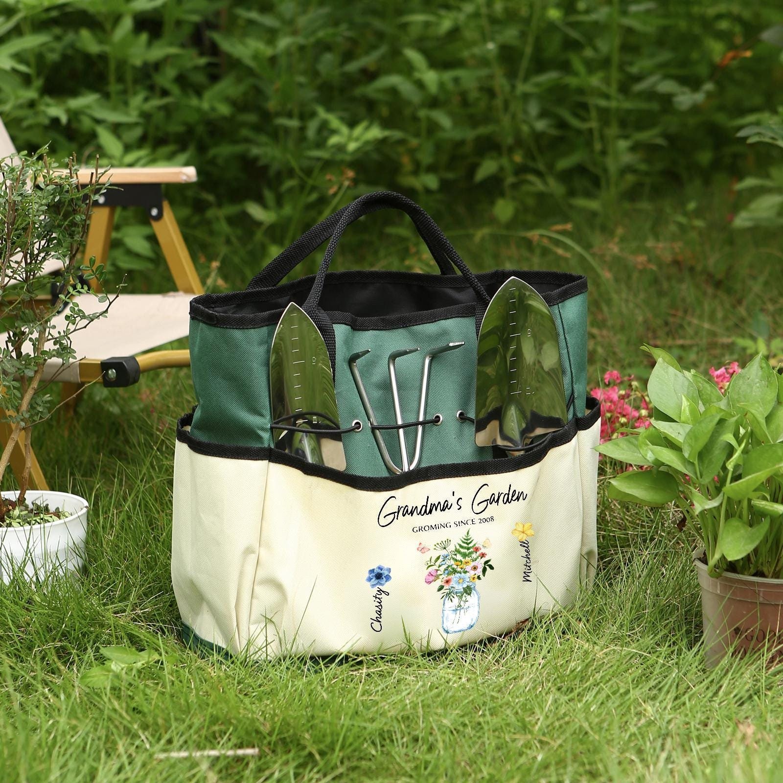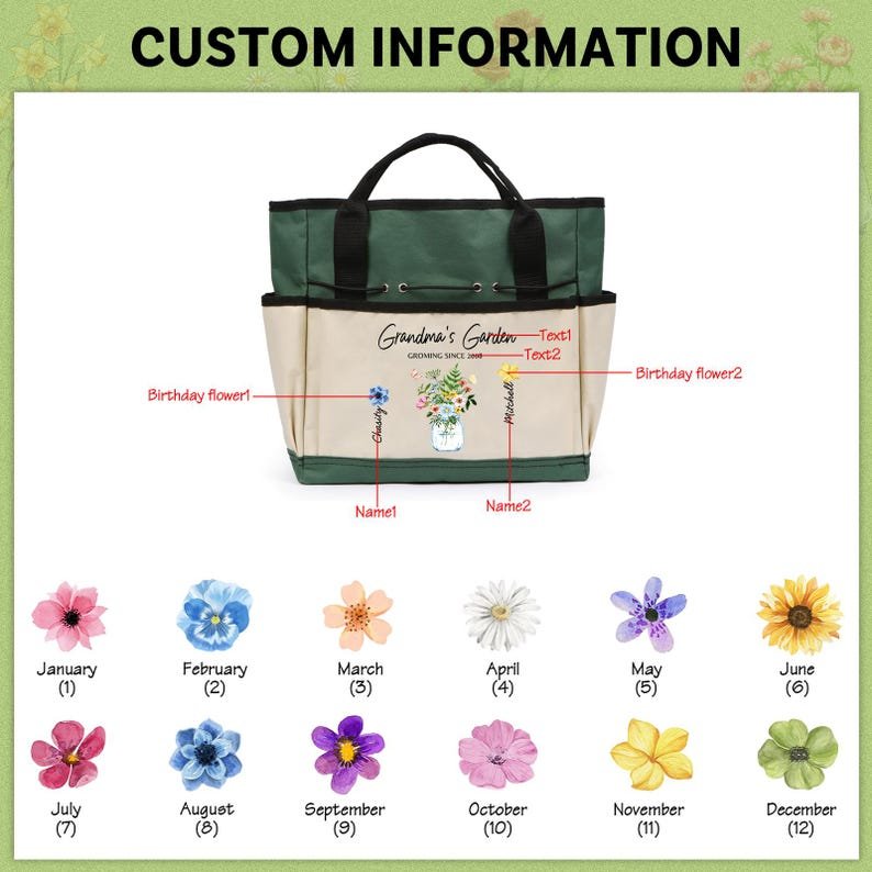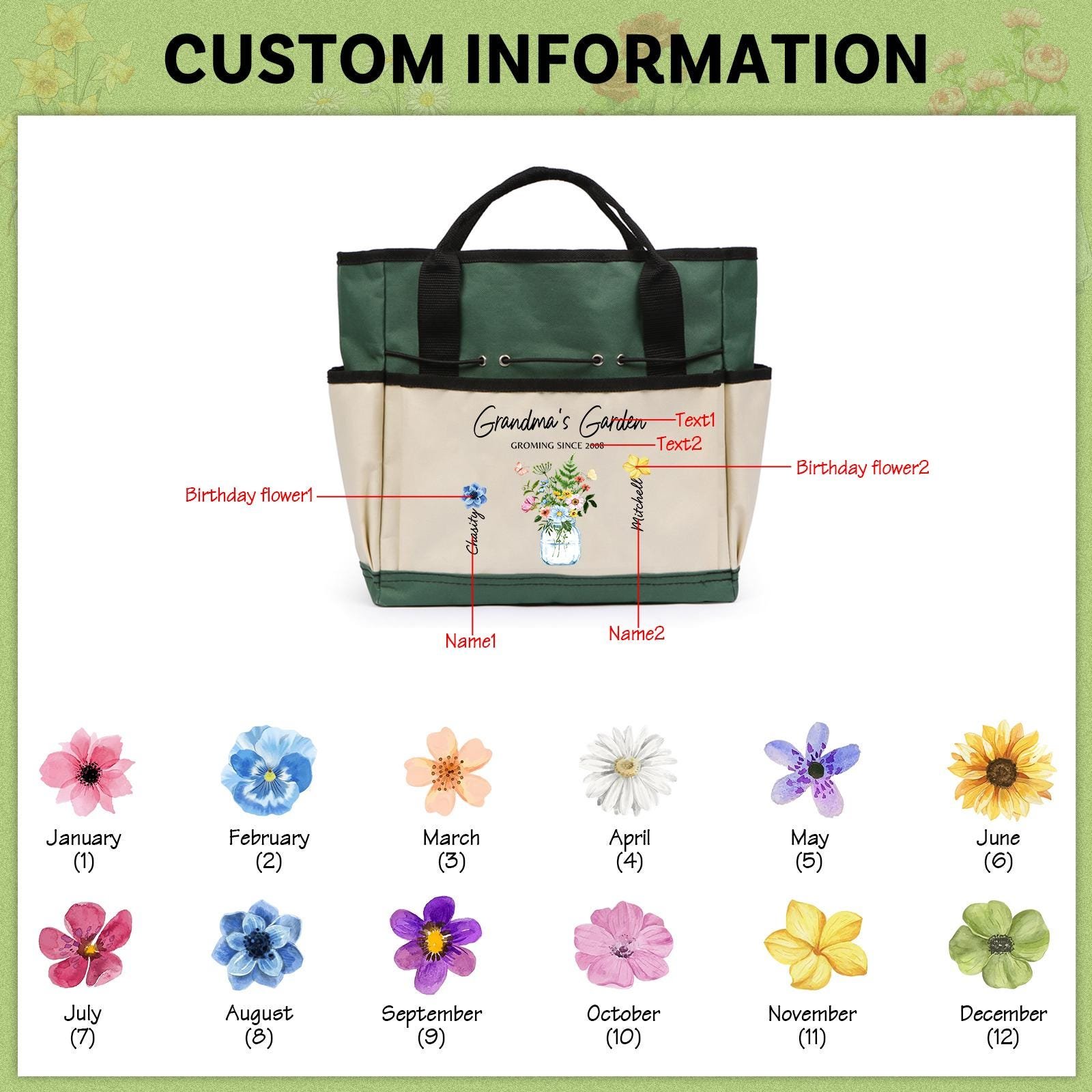 Gardening Tool Bag,2~6 Names Birth Flower,Garden Tote Bag,Plant Person Gift,Gift for Green Thumb,Gardening Gifts for Women,Gift for Grandma