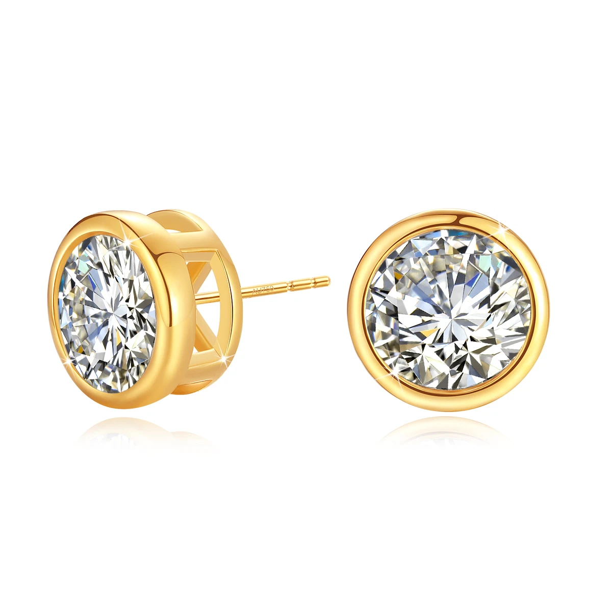 Genuine 18K Gold Moissanite Stud Earrings 2ct Diamond Earrings Classic Trendy for Women Wedding Gifts Fine Jewelry