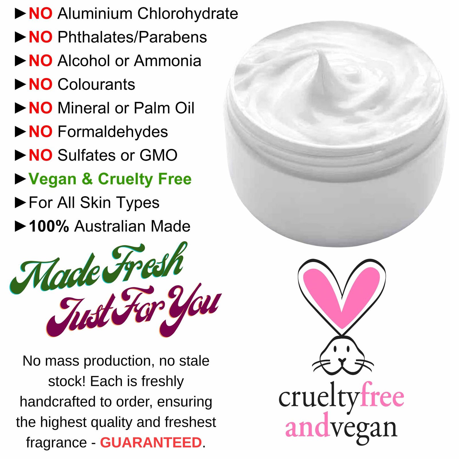 Each jar is handcrafted to order, ensuring freshness, quality, and the most luxurious fragrance. No mass production, no stale stock — just pure, nourishing vegan skincare.