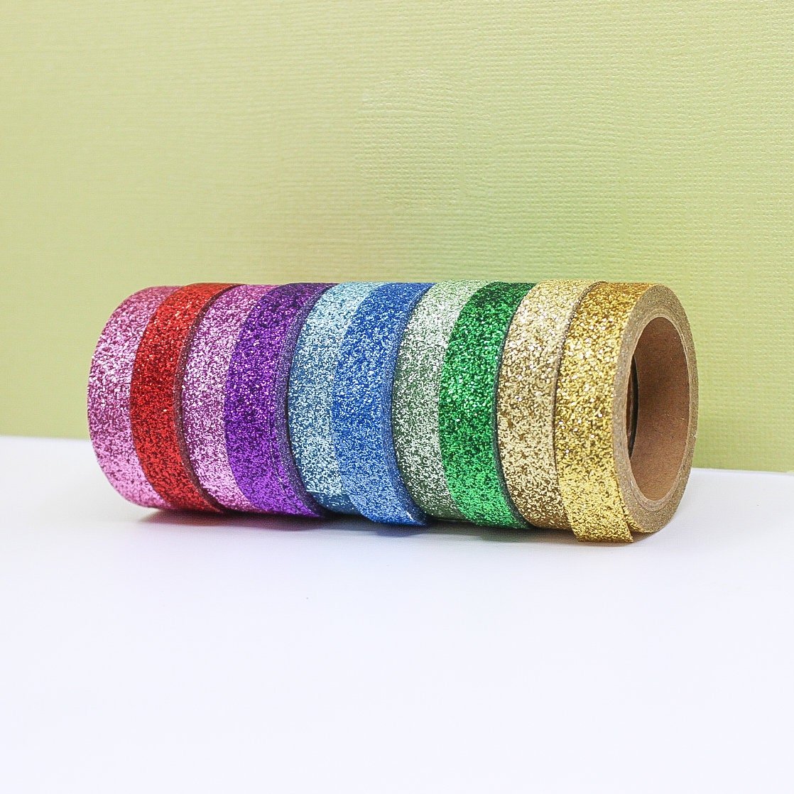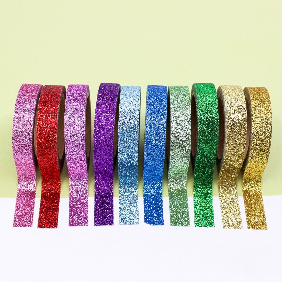 Glitter Narrow Washi Tape Set, Rainbow Glittery Planner Tapes, Sparkling Craft Tapes, Glitter Stickers Paper Tape | BBB Supplies | R-ST014