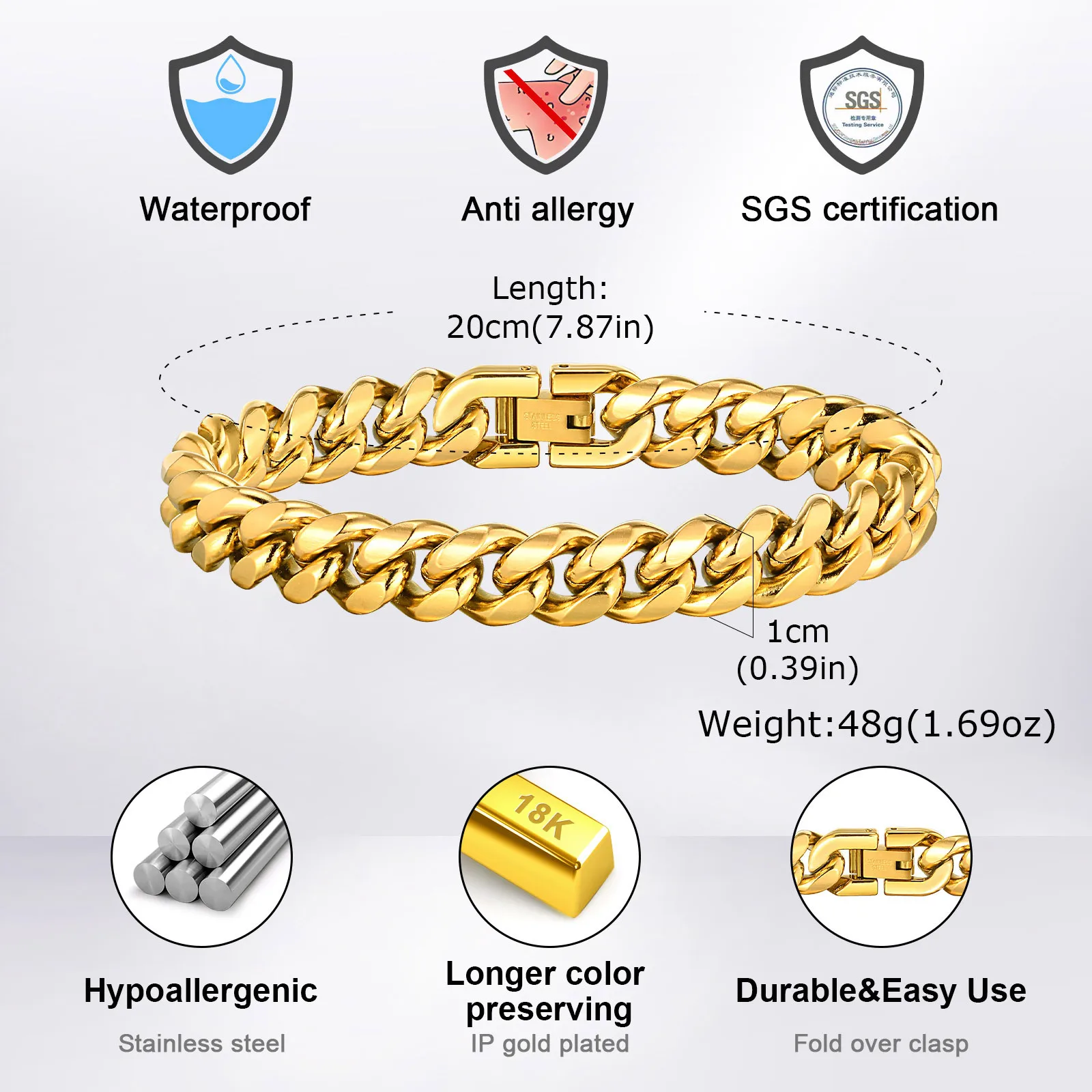 Be the first to review “Gold Color Cuban Chain Bracelets for Men,6/8/10MM Stainless Steel Chain Link Wristband,Casual Hip Hop Male Jewelry Gift” Cancel reply