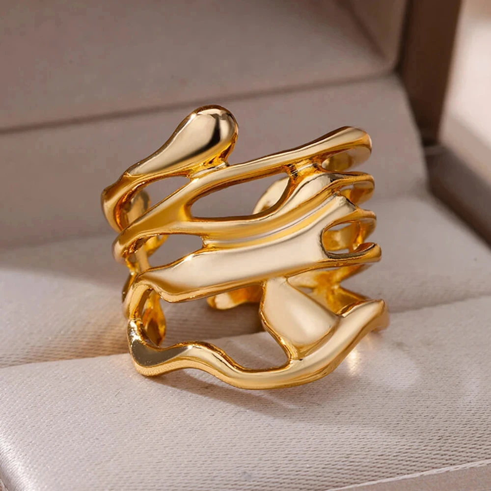 Gold Color Stainless Steel Multi Layer Rings for Women Hollow out Open Finger Ring Fashion Wedding Party Jewelry Gift 2024 New