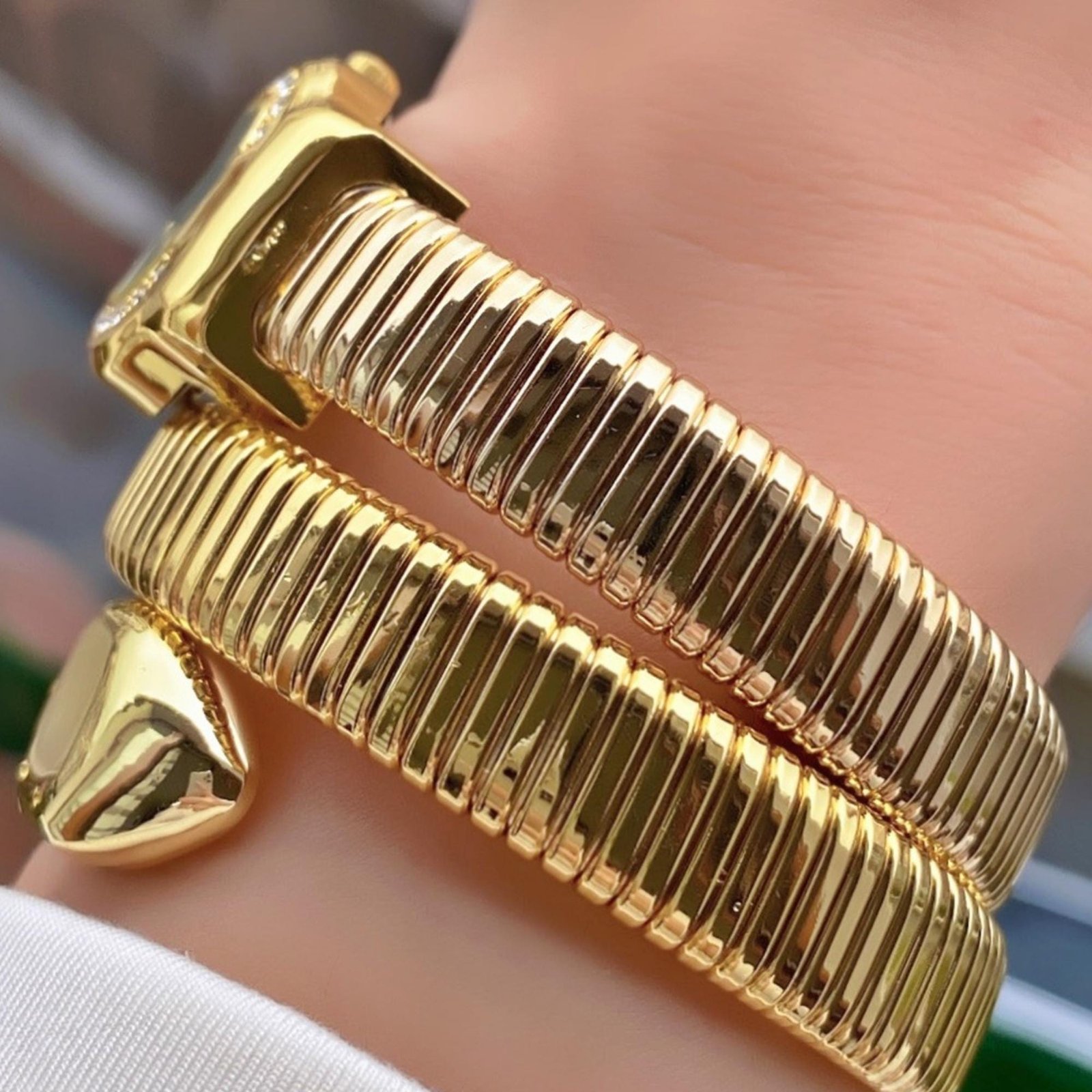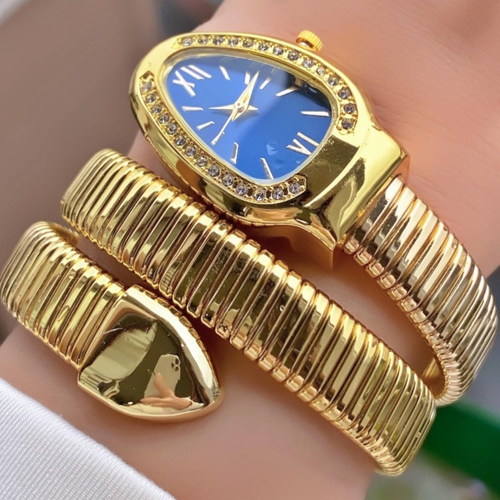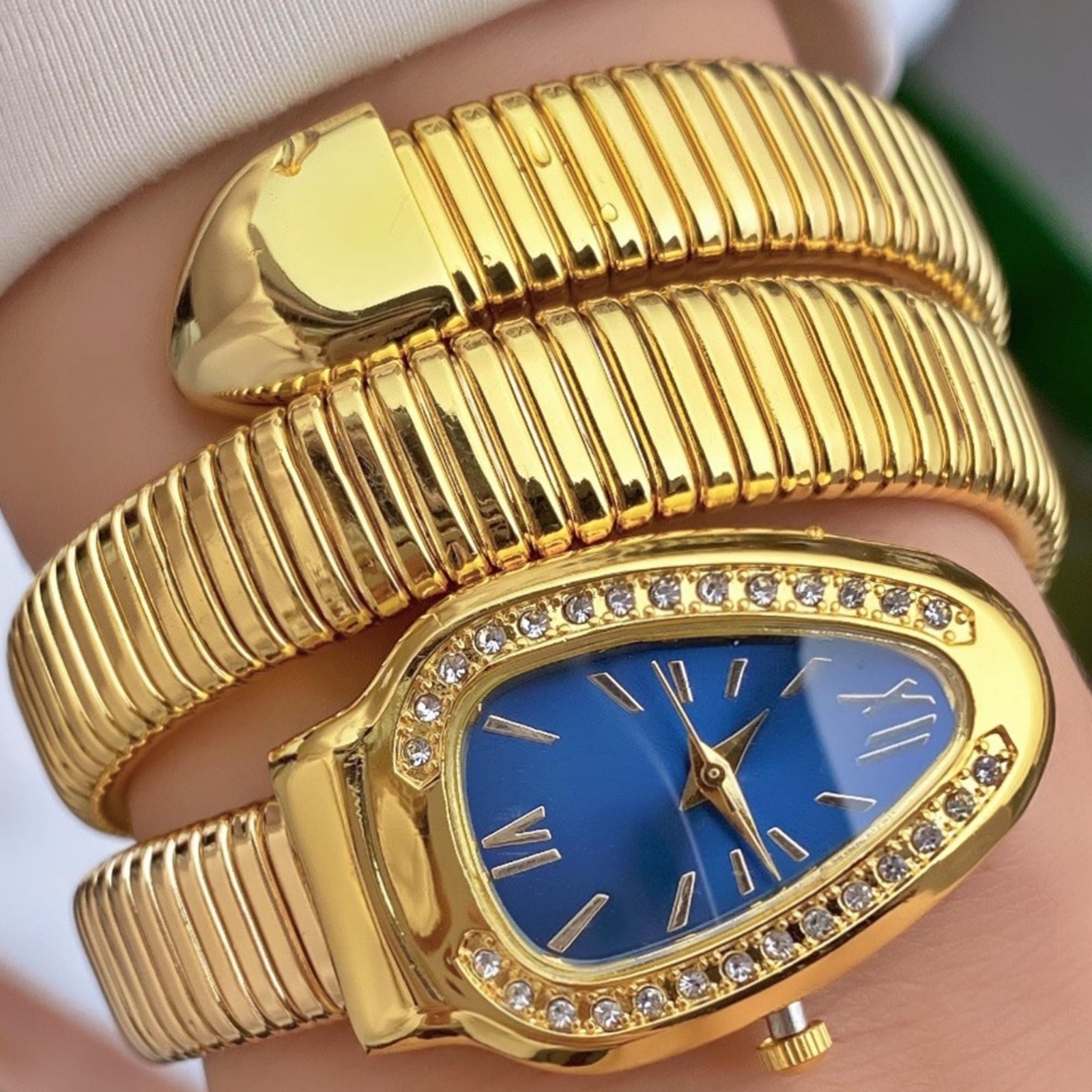 Gold Snake Watch – Stainless Steel Wrap Bracelet with Crystal Accents