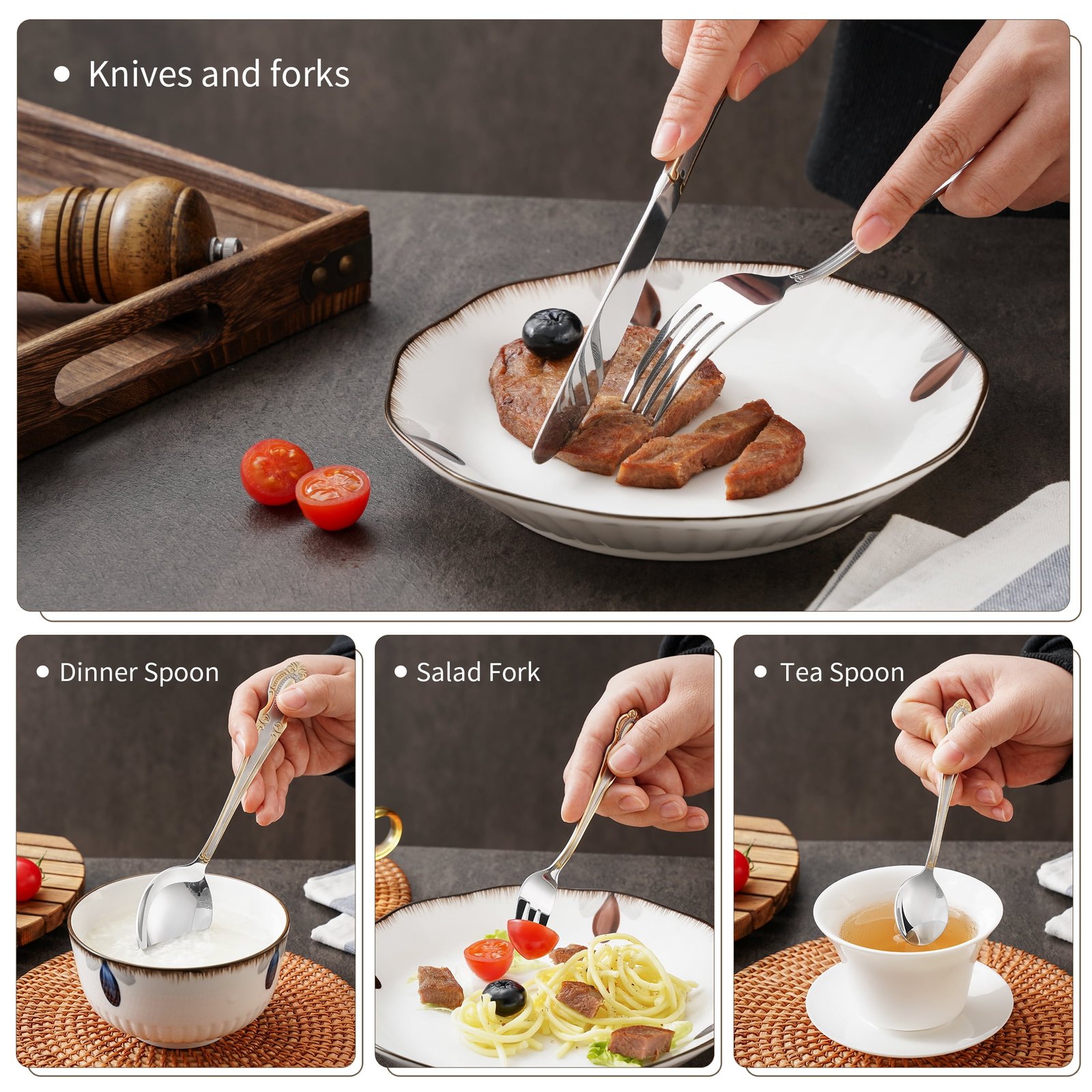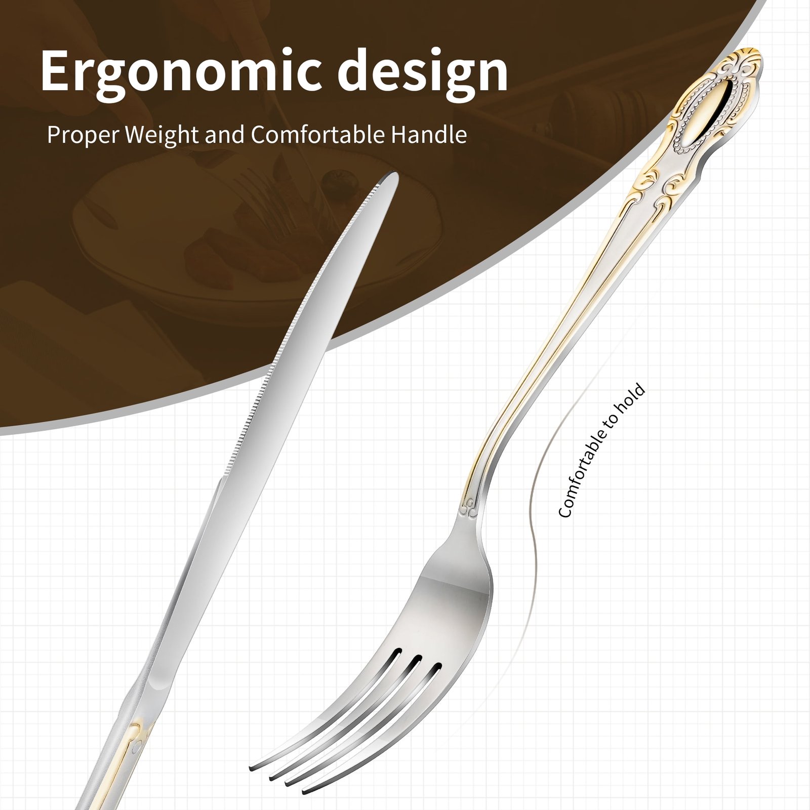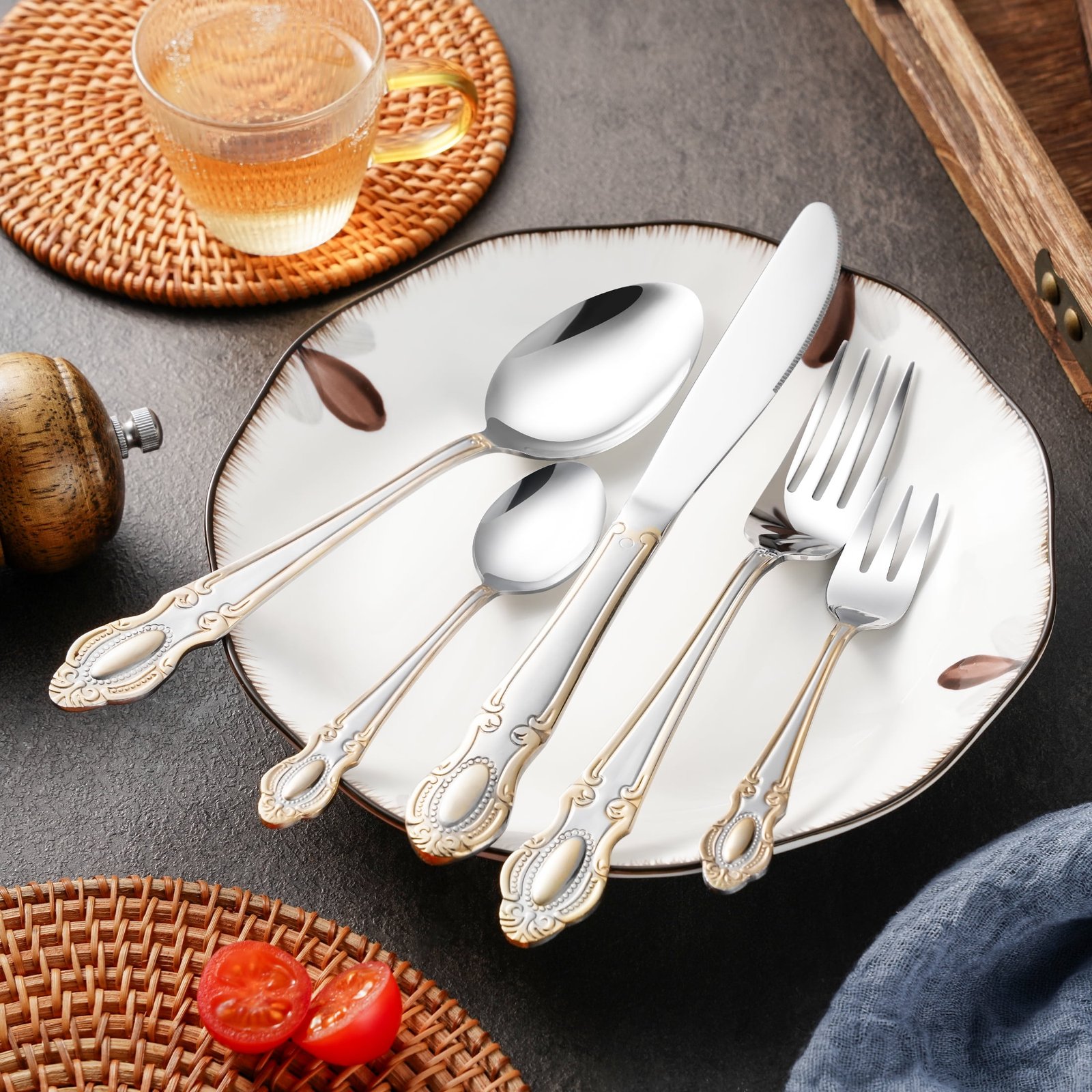 GPED 20 Piece Silverware Set, Stainless Steel Flatware Set for 4, Mirror Tableware Set with Gold Accents, Great for Family Gatherings & Daily Use, Gold