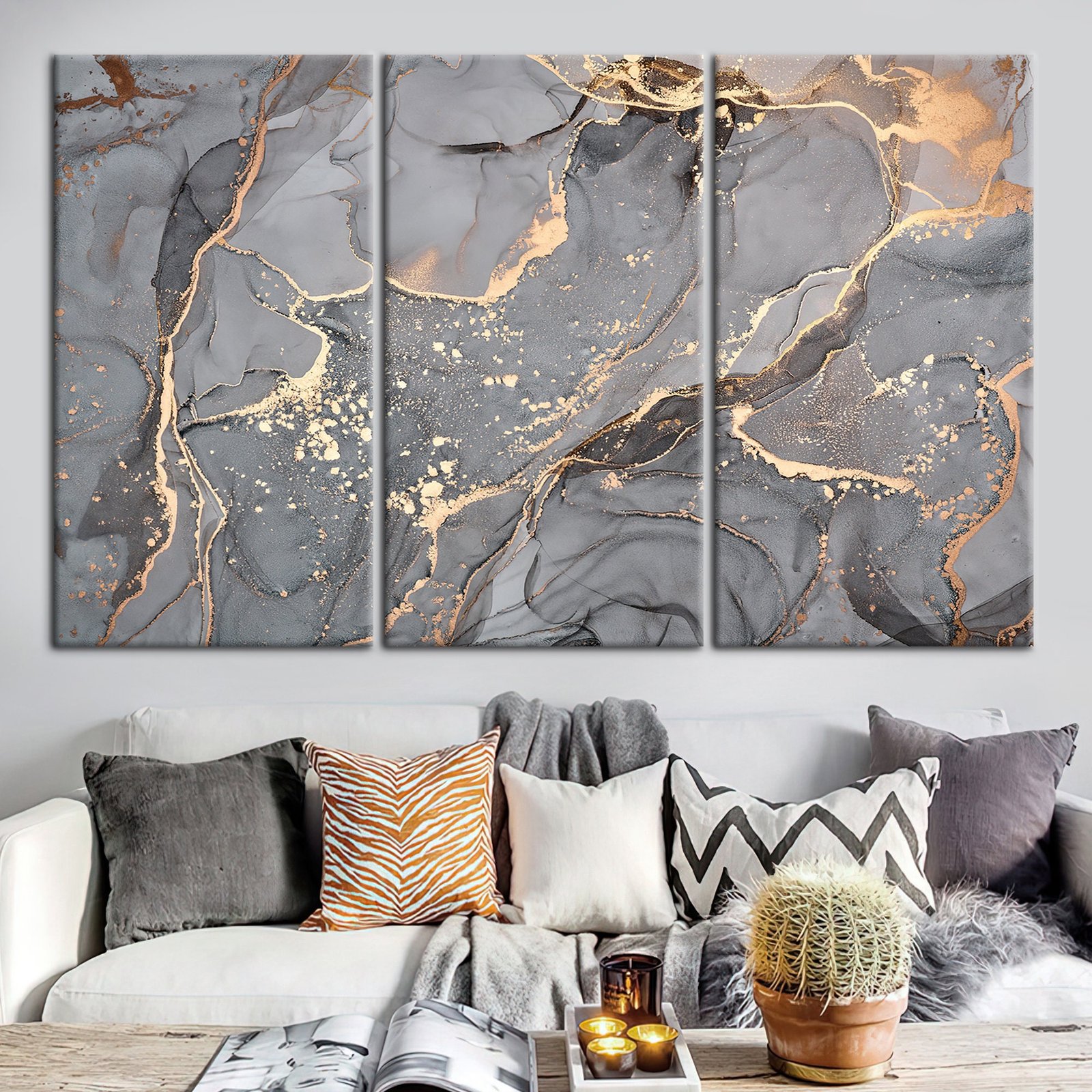 Gray And Gold Marble, Gold Marble Printed, Alcohol Ink Artwork, Modern Wall Art, Modern Marble Artwork, Marble Wall Decor,