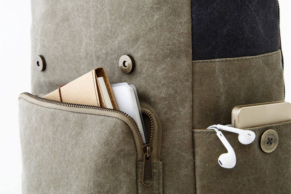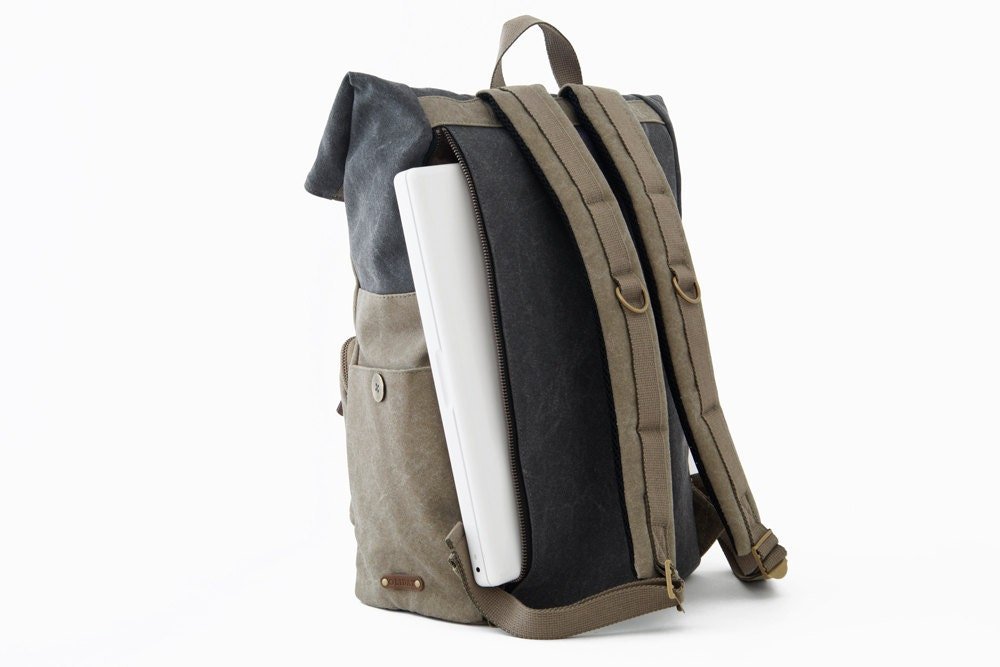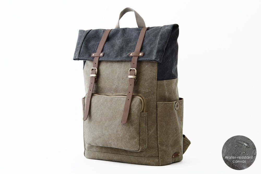 Green Canvas Laptop Backpack: Unisex Work School Bag