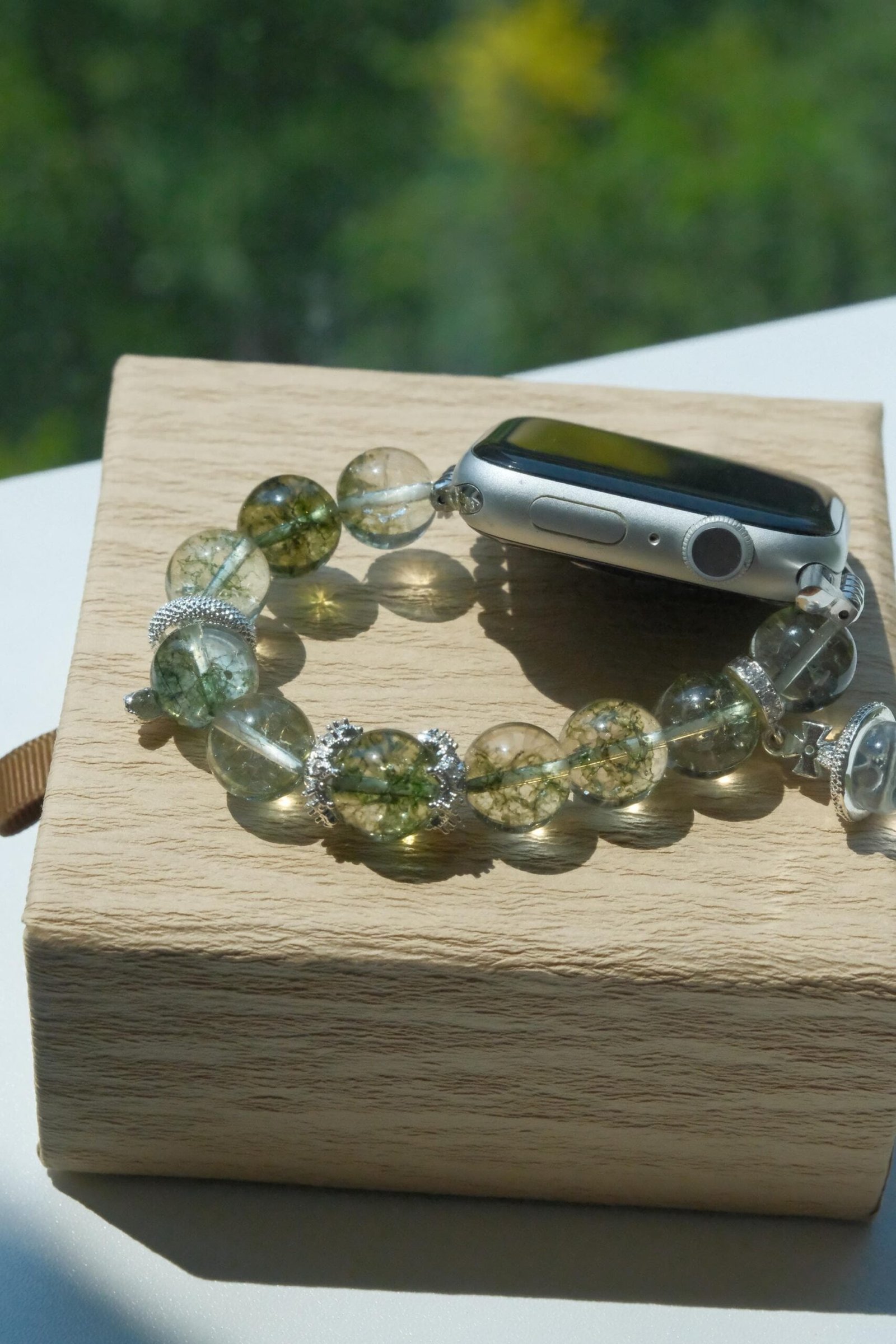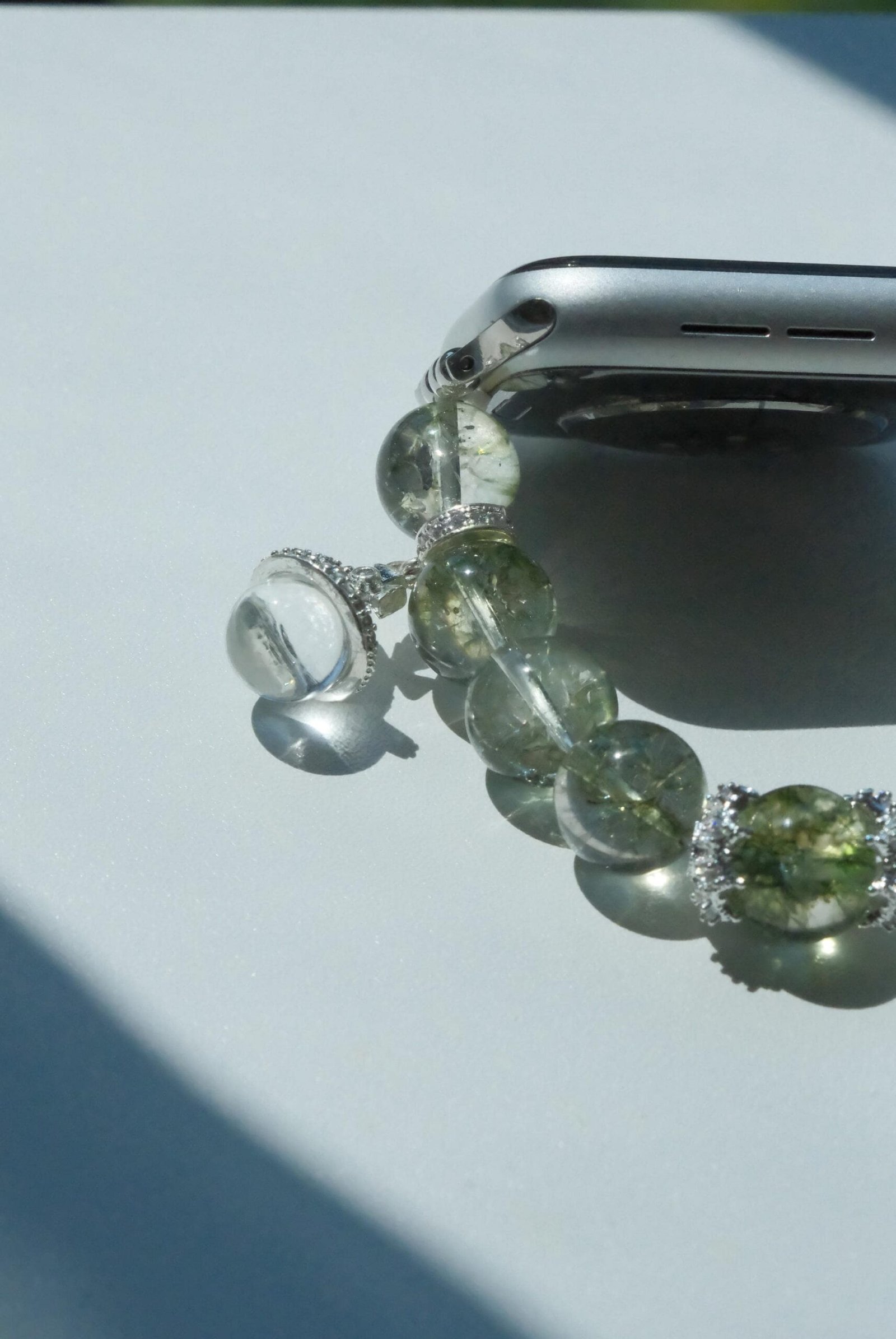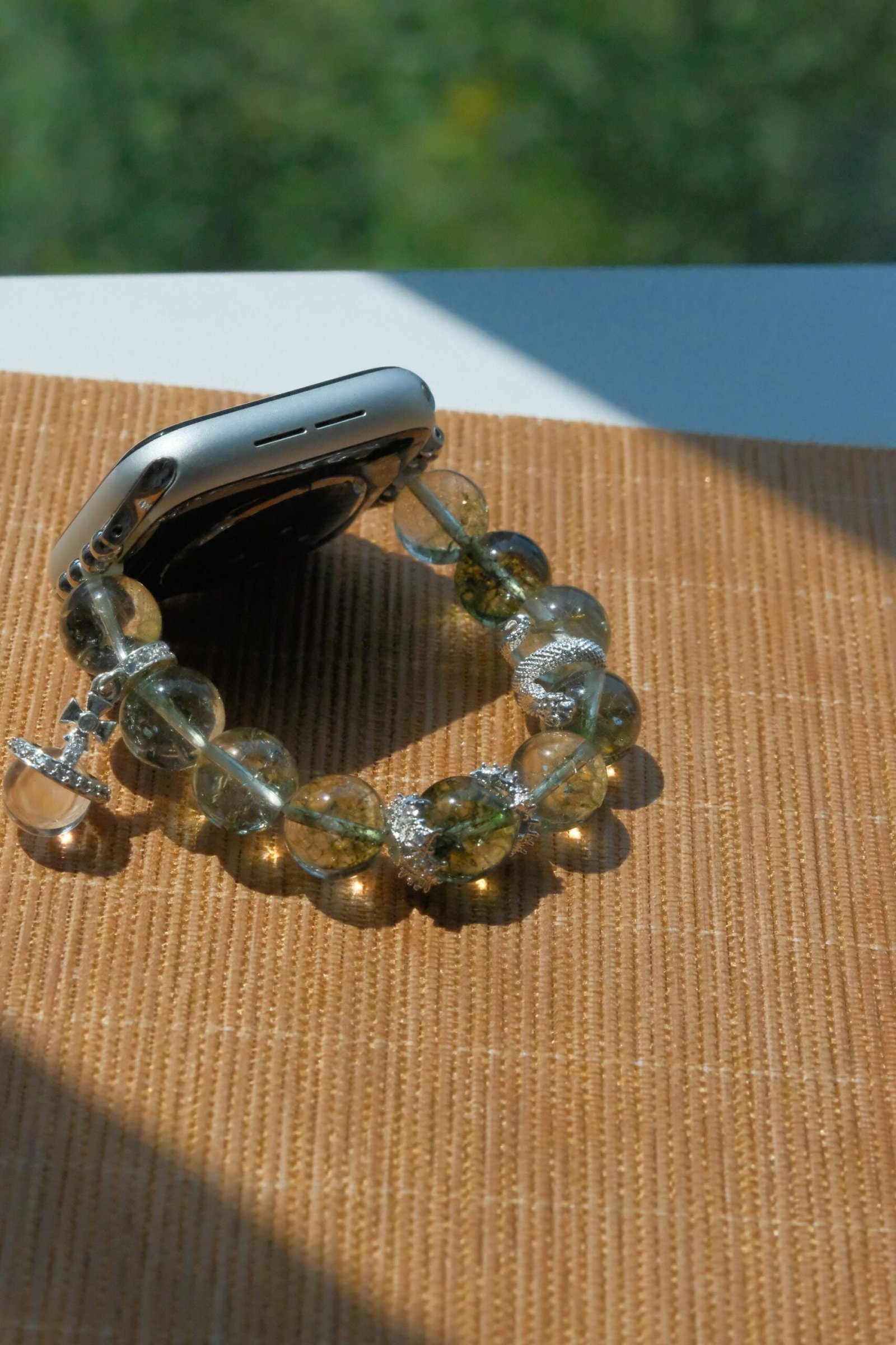Be the first to review “Green Crystal Apple Watch Band – Single Strand Beaded Bracelet Strap with Silver Snake Charm”