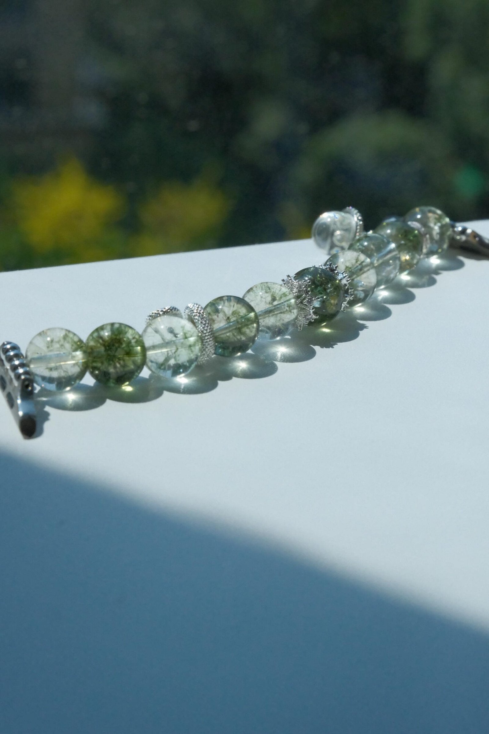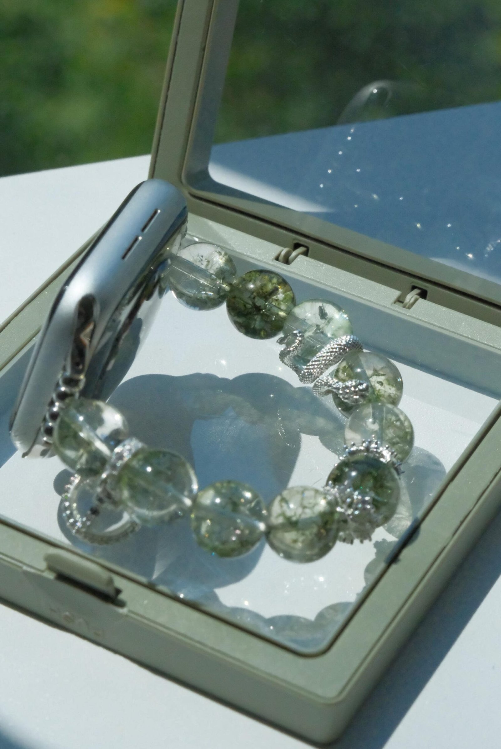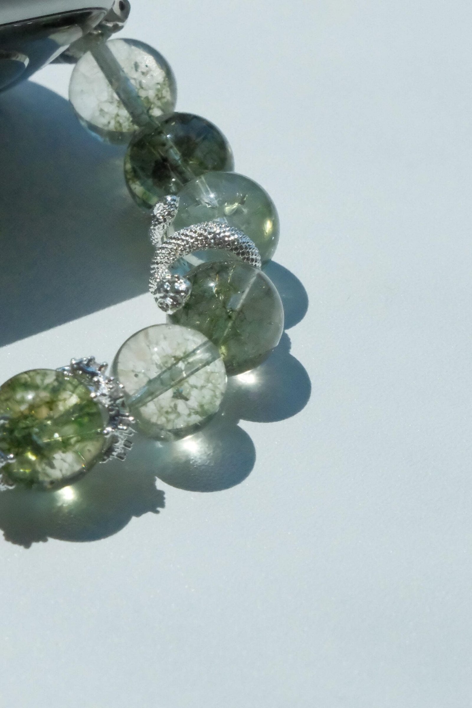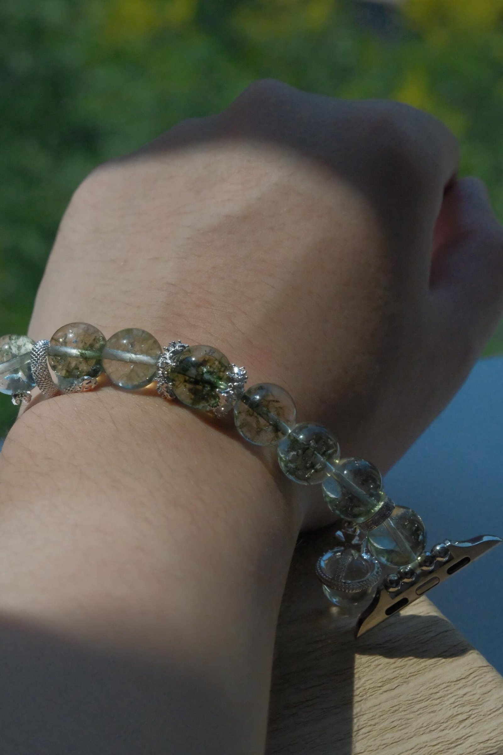 Be the first to review “Green Crystal Apple Watch Band – Single Strand Beaded Bracelet Strap with Silver Snake Charm”