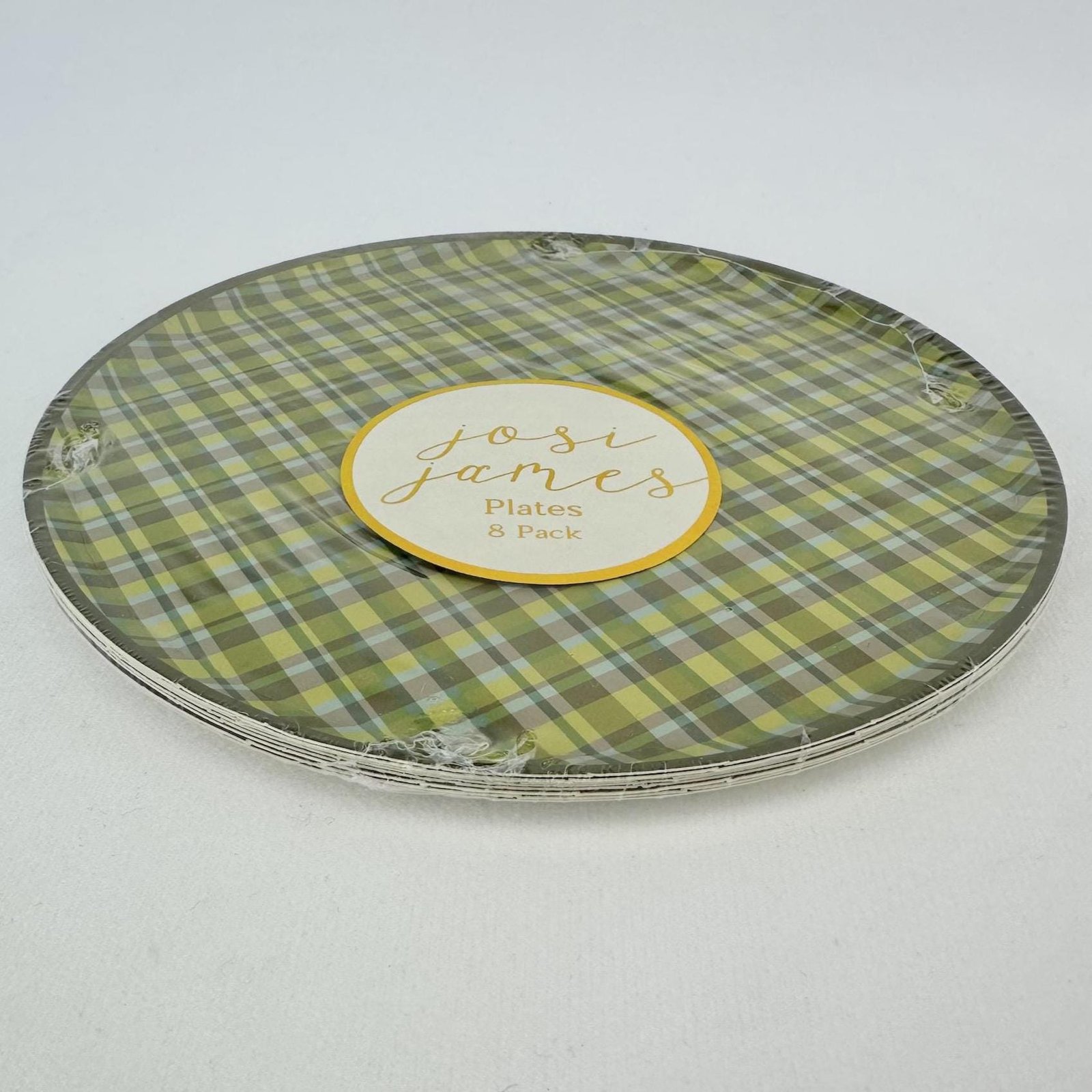 Green Plaid Paper Dessert Plates 8ct – 7"e; Camping Theme Cake Plates for Birthday, Baby Shower, Father's Day, Golf, Outdoor or Woodland Party