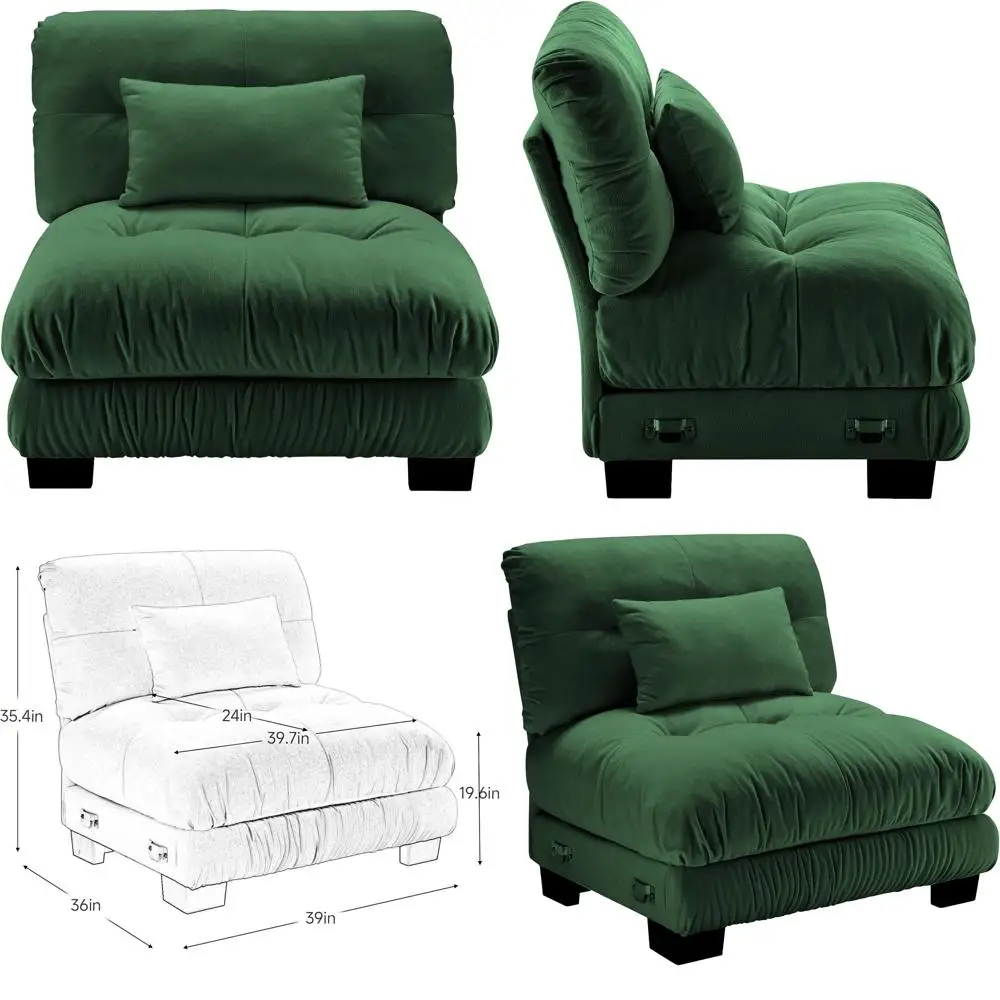 Be the first to review “Green Upholstered Armless Sofa with One Pillow, High-Density Foam Cushion, Modern Living Room Furniture” Cancel reply