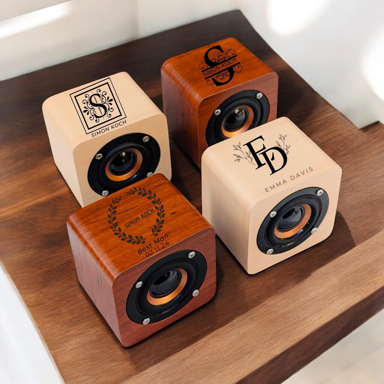 Groomsmen Gifts Personalized Bluetooth Speaker Bridesmaid Gifts Custom Portable Rechargeable Bluetooth Speaker Mini Wood Speaker