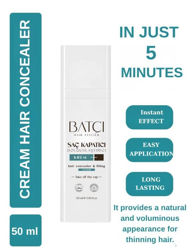 Thanks to its formulas, when applied to the areas with thinning hair, it provides lasting results between 5 to 15 days depending on your skin type and usage method. With its ease of use, you can apply it simply. Approved by the Ministry of Health, Batçı Hair Concealer is the only one in the world that offers a long-lasting, natural-looking solution for fine hair and thinning areas. With just one application, your hair looks fuller, and its effect lasts up to 15 days.