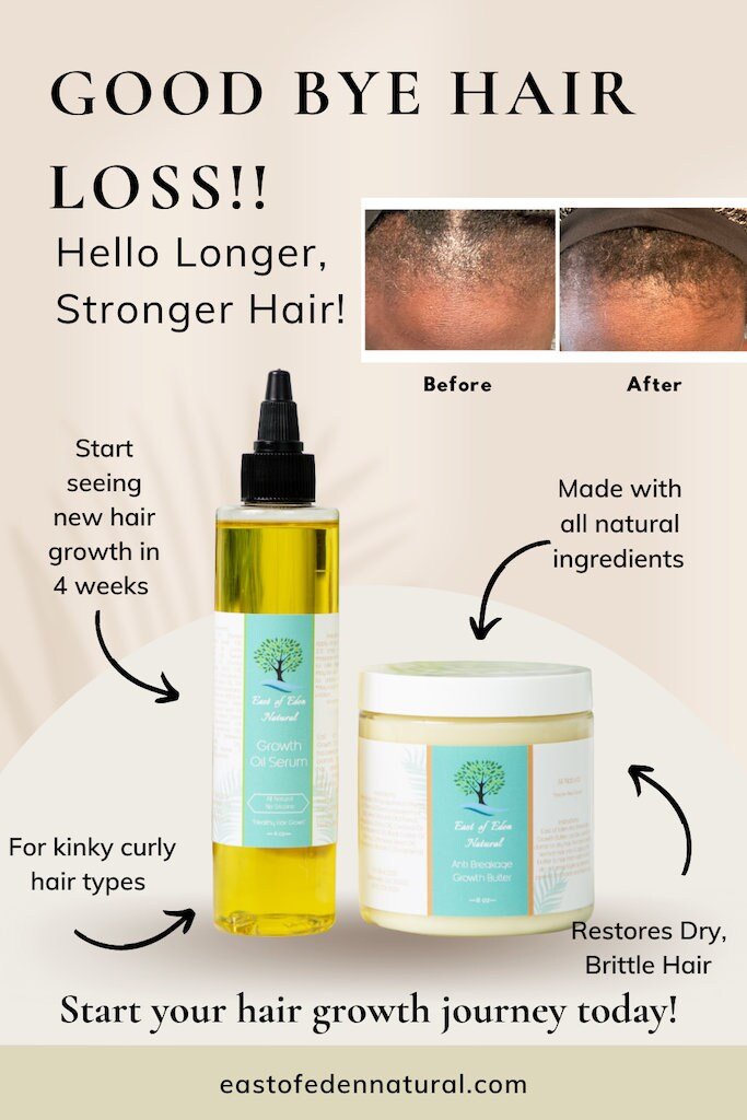 Hair Growth Bundle| Hair Growth oil and Whipped Shea Butter for balding and thinning hair| East of Eden Natural