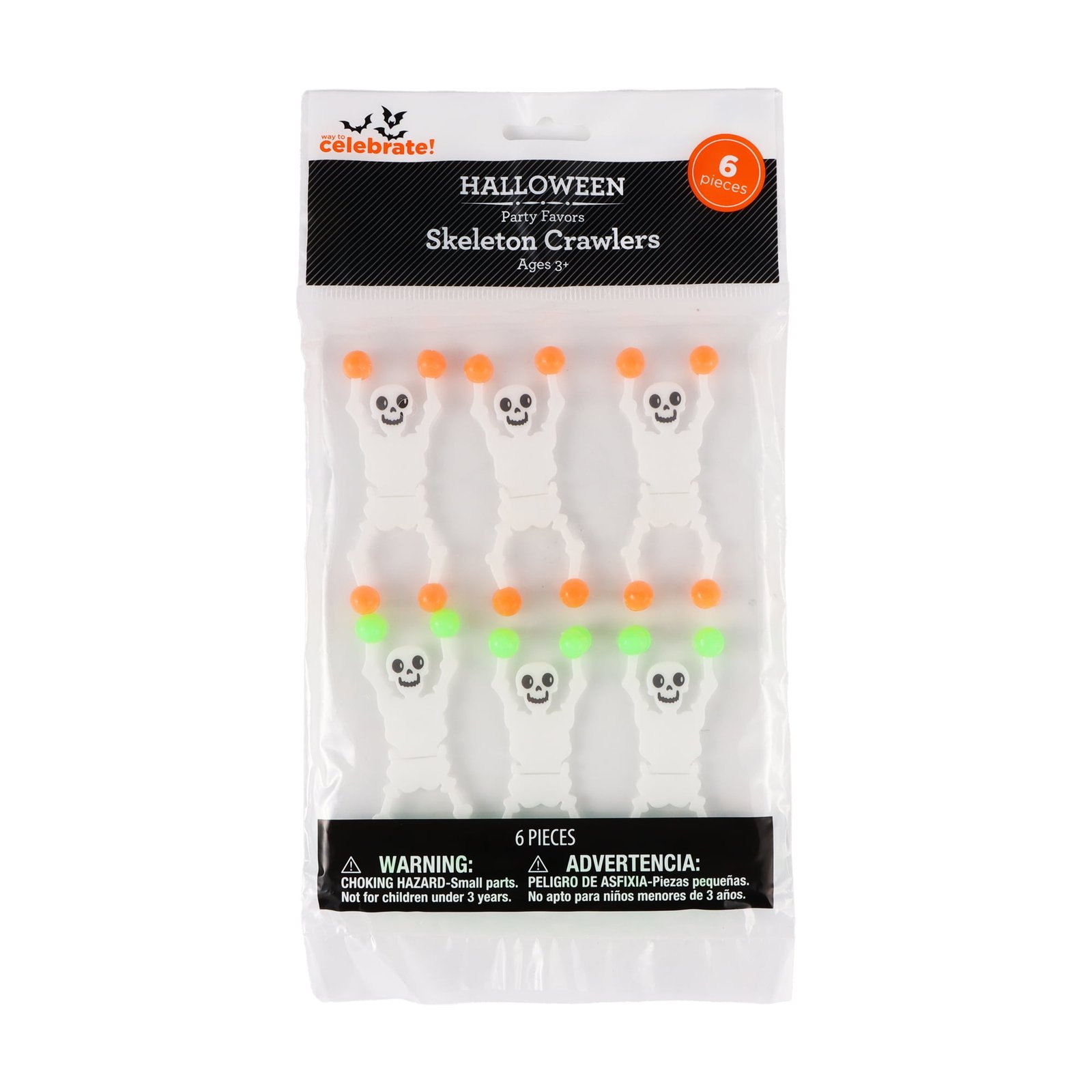 Halloween Skeleton Crawlers, 6 counts, Orange, Green, For Ages 3+, Party Favors, by Way to Celebrate