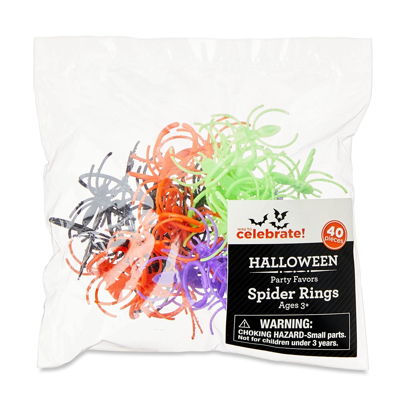 Halloween Spider Rings, 40 Pieces, 4 Plastic Materials, Ages 3+, Multi-Colors, Party Favors, by Way to Celebrate