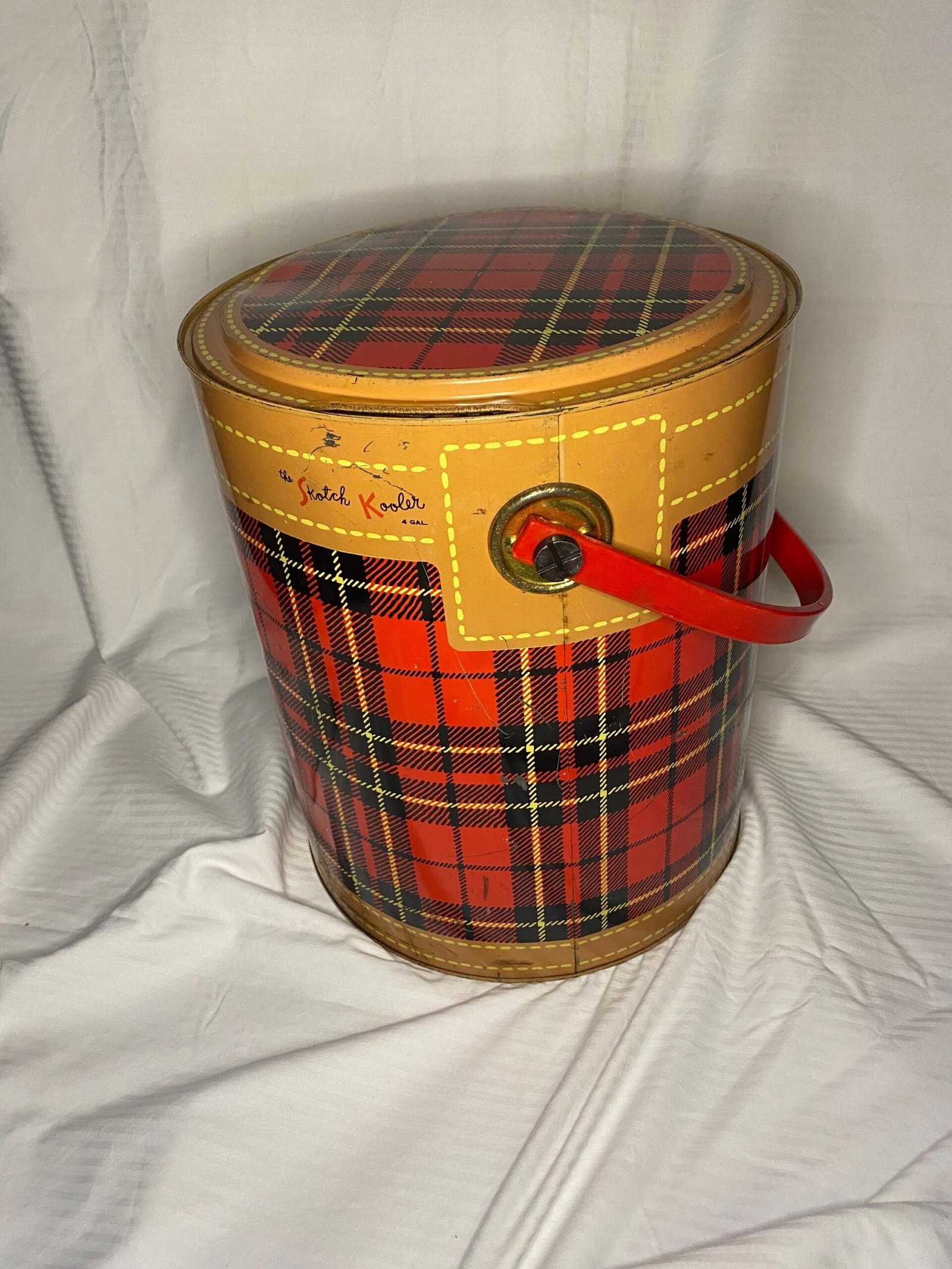 Hamilton Skotch Kooler – c. 1950s – measures 13 1/2″ high x 11 3/4″ in diameter. This cooler includes the original plastic tray. This cooler would be great as a staging piece for a vintage car show, photo shoot, or set. It has signs of age and use including rust, scratches, and loss of paint pictured. The plastic tray has hairline cracks in it. All vintage items are, by definition “used” and may show signs of age and/or use. Buying vintage items online assumes some risk. This and all vintage items in my shop are sold as found and priced accordingly. I do not allow returns unless the buyer can proved that the items was not described or photographed accurately.