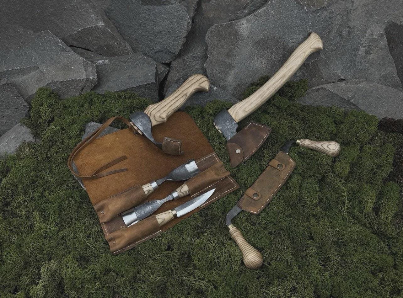Hand-Forged Wood Carving Tool Set | 7-Piece Set with Leather Roll