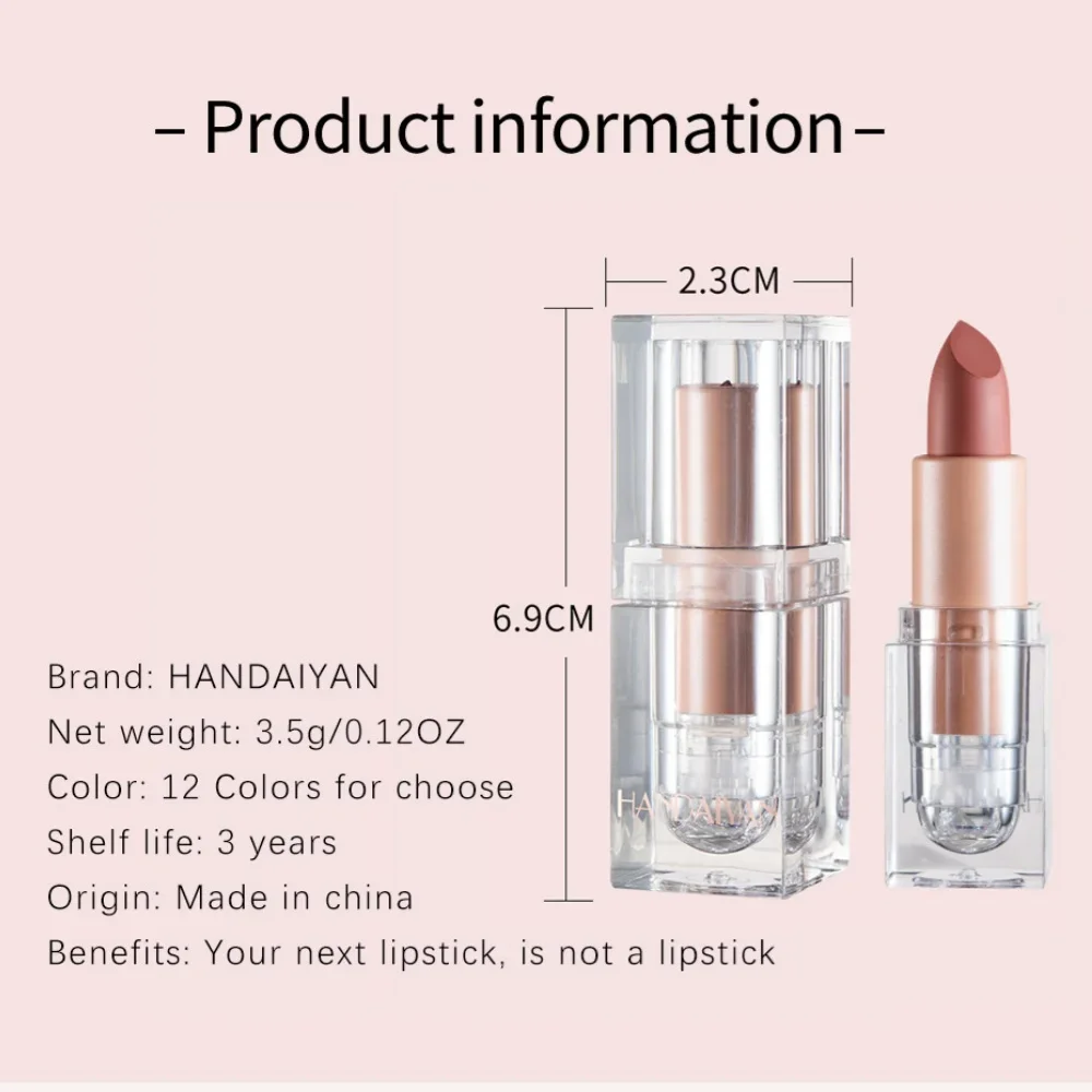 Be the first to review “HANDAIYAN Matte Nude Lipstick Velvet Finish Lipsticks Long-Lasting Waterproof Women’s Makeup Korean Cosmetic Popular Gift Item” Cancel reply