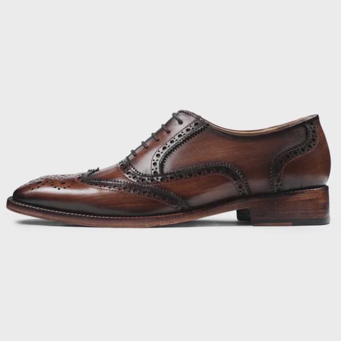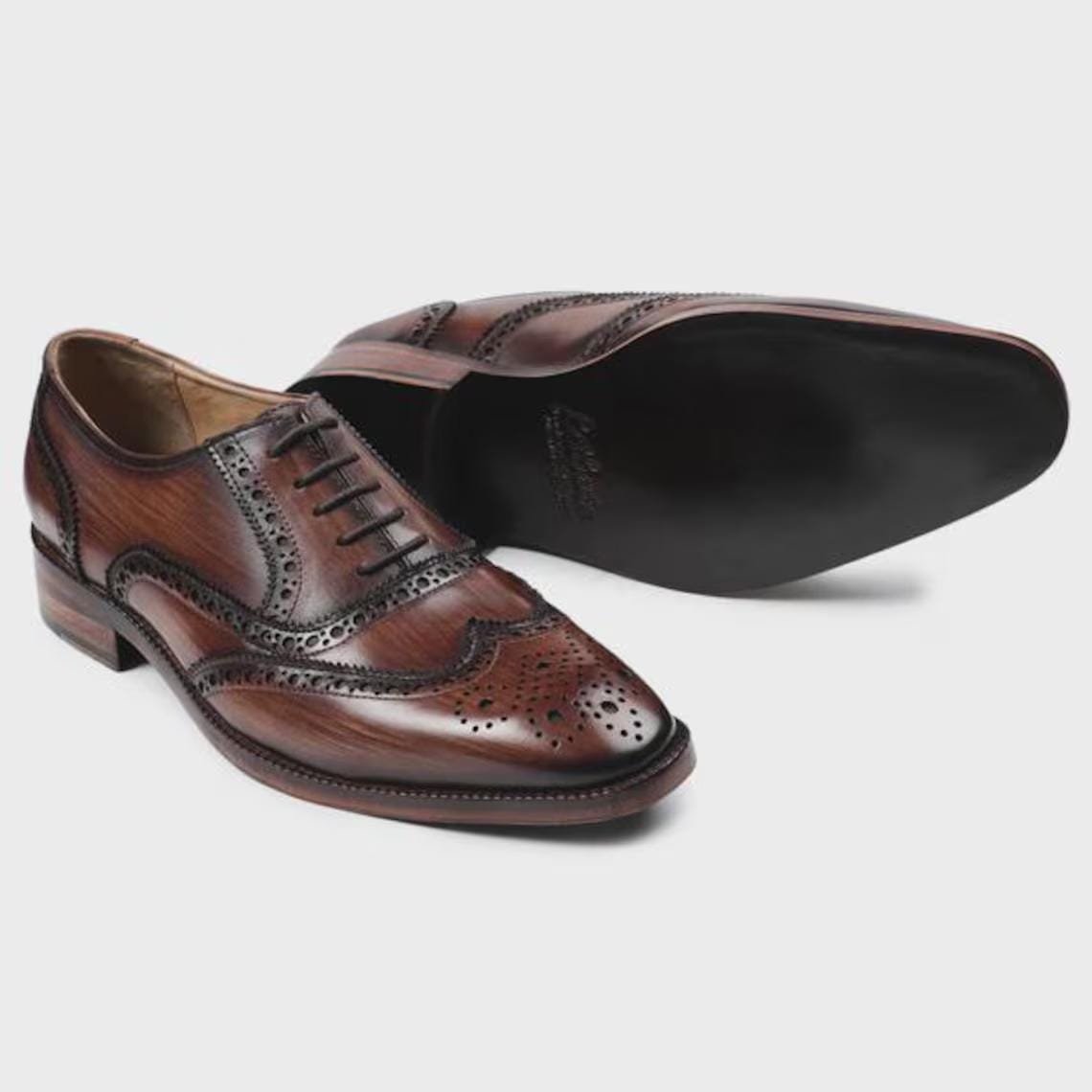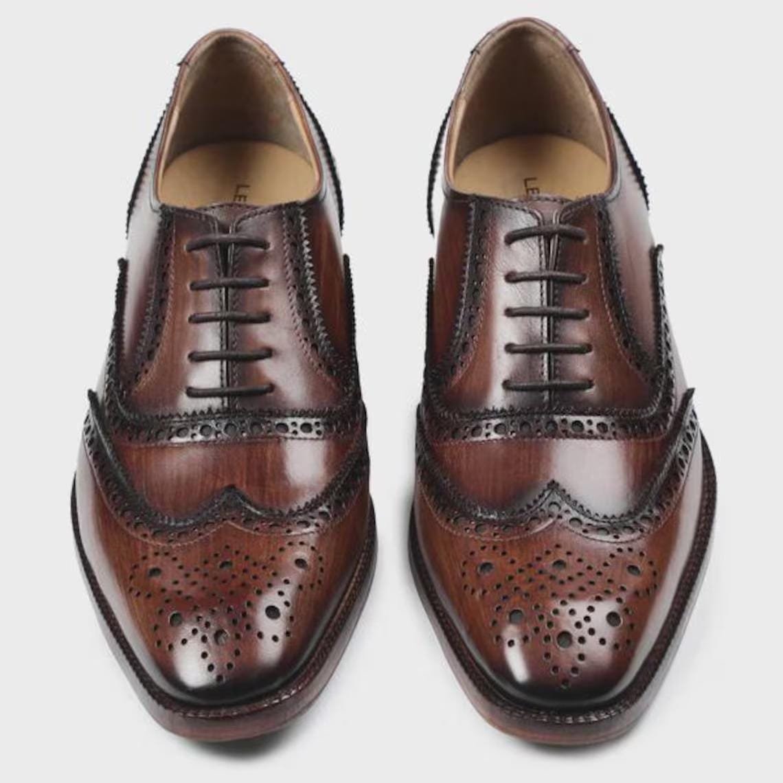 Hand-polished brown finish with classic brogue design