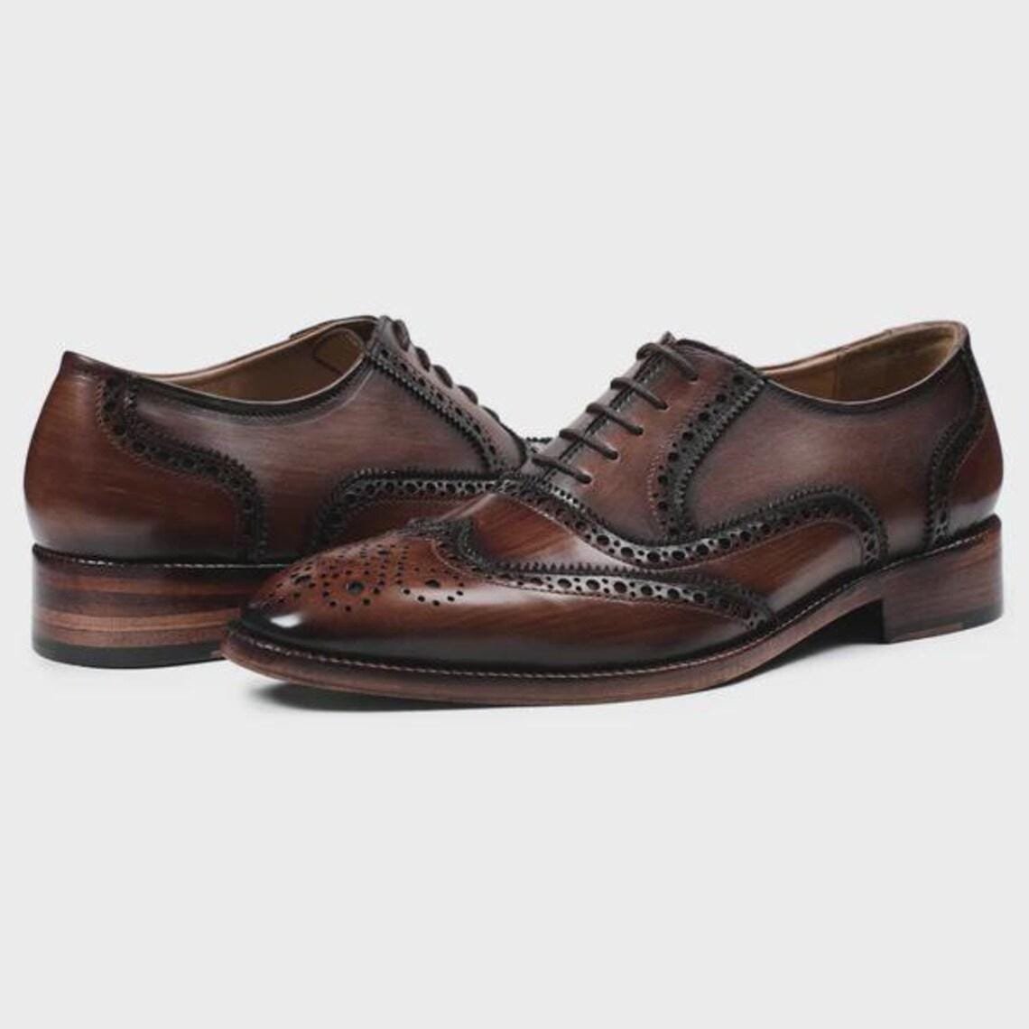 Handcrafted Brown Wingtip Oxford Shoes | Genuine Leather Dress Shoes for Men | Formal & Wedding Footwear