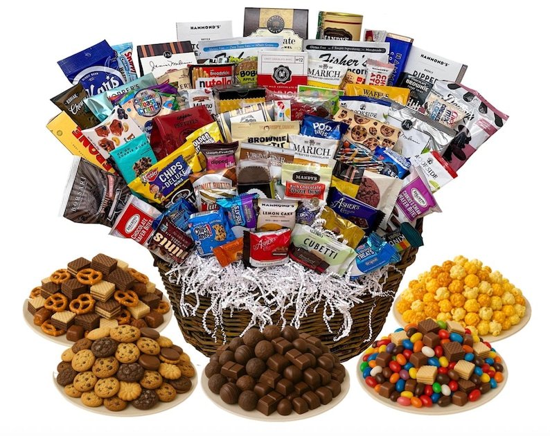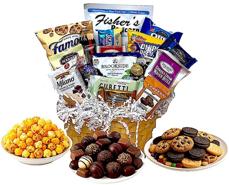 Handcrafted Gift Basket: Chocolates, Cookies, Snacks, & Candy