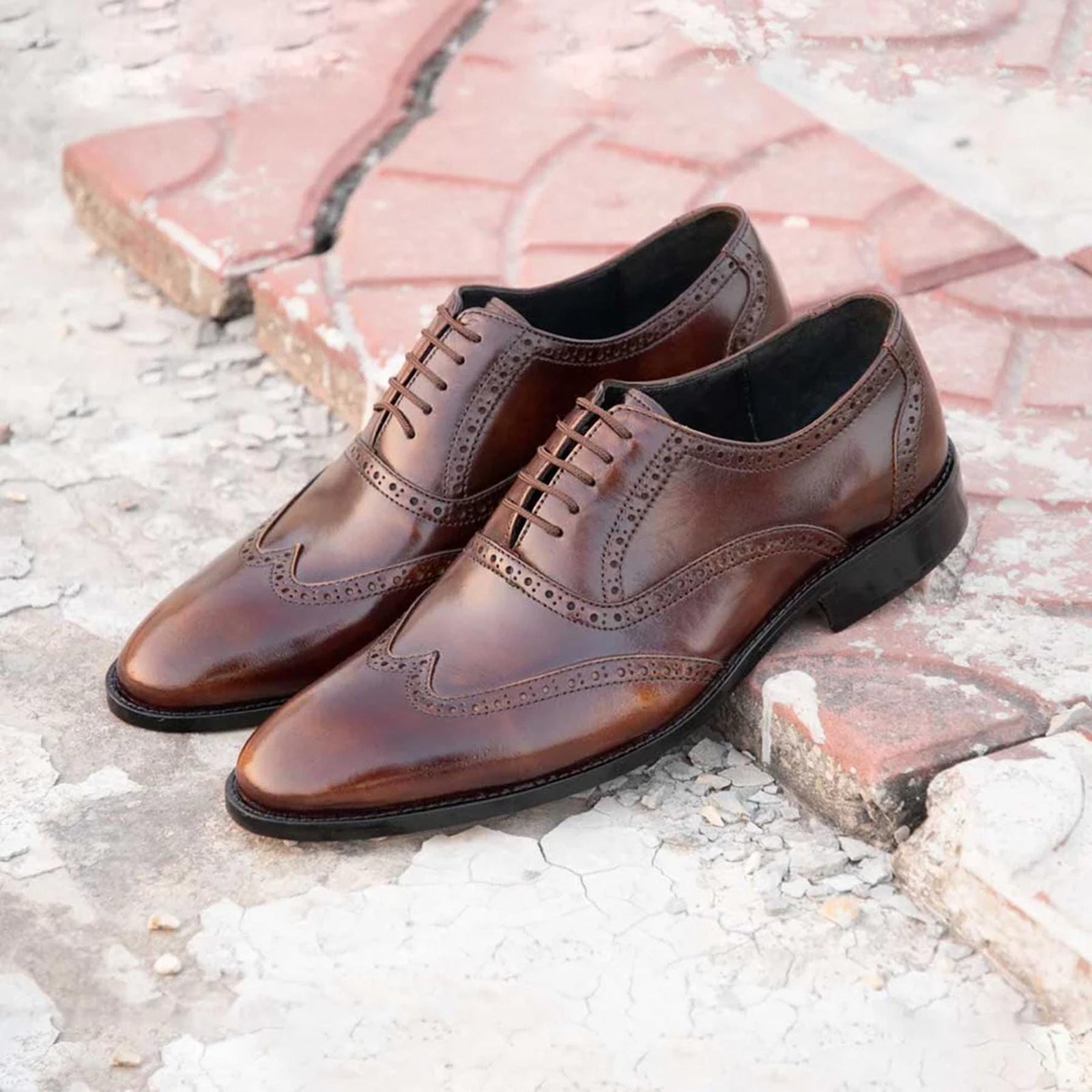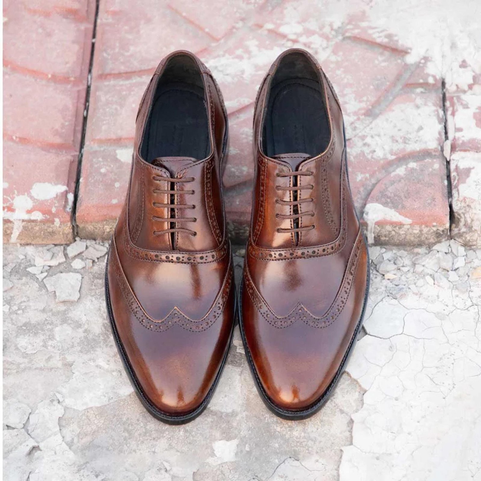 Handcrafted Mustard Leather Wingtip Brogue Oxfords: Men's Formal Dress Shoes
