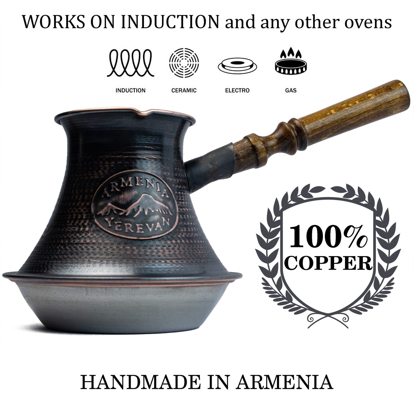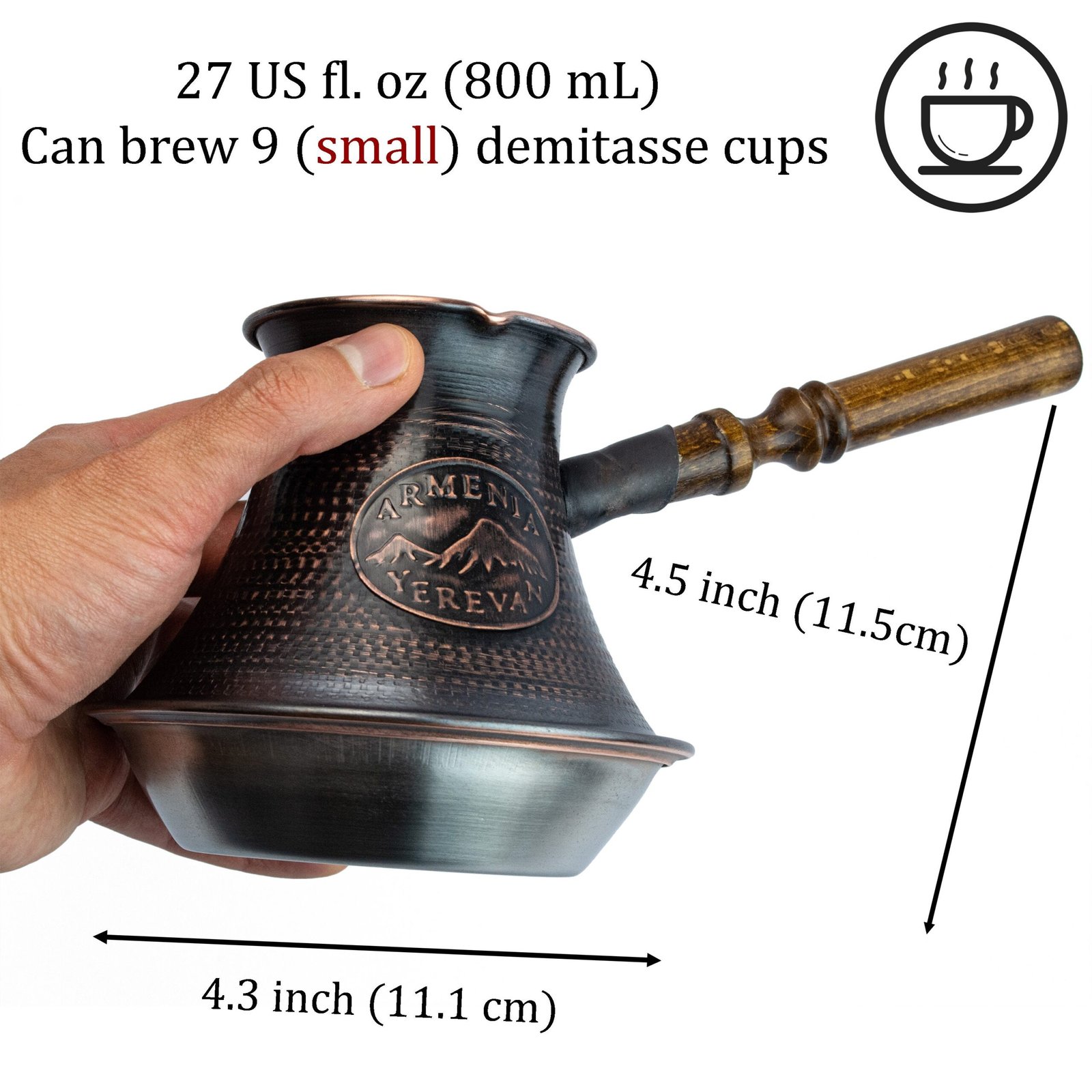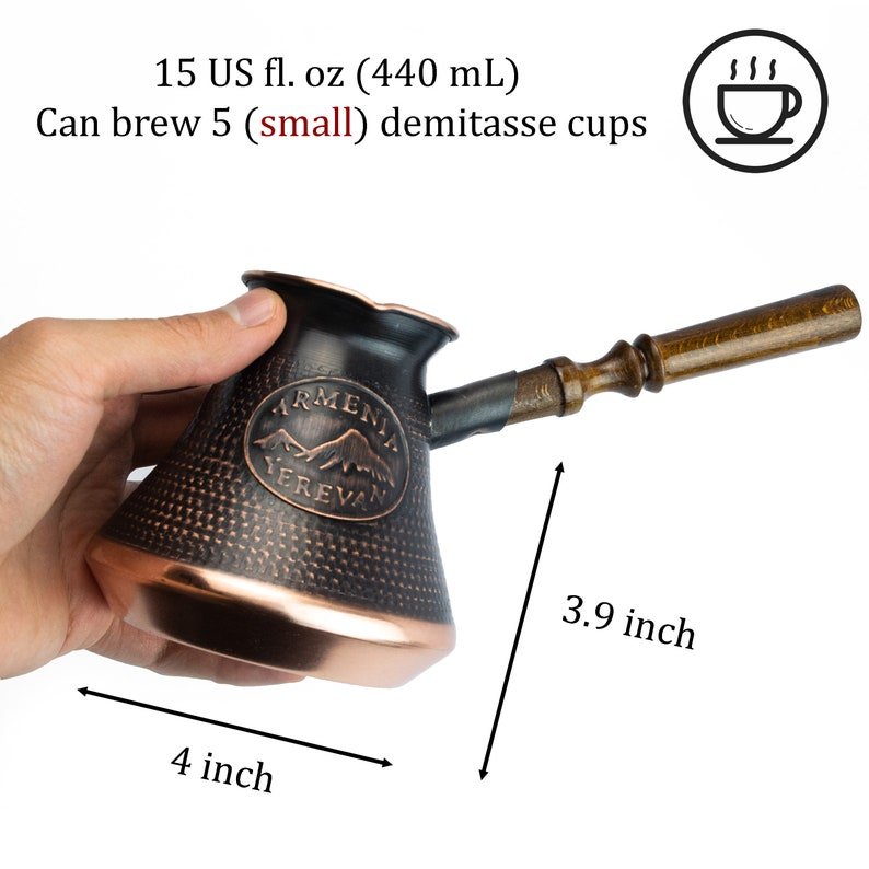 Handmade Armenian Coffee Pot Copper Jazva Makers Ararat Wooden Handle Turkish Cezve Jezve Ibrik Turka Arabic Greek