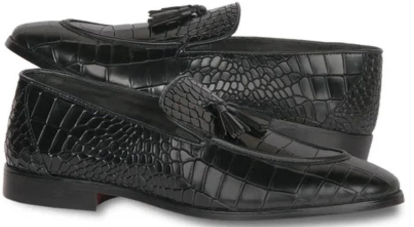 Handmade Black Crocodile Leather Loafers:| Luxury Tassel Slip-On Shoes for Men