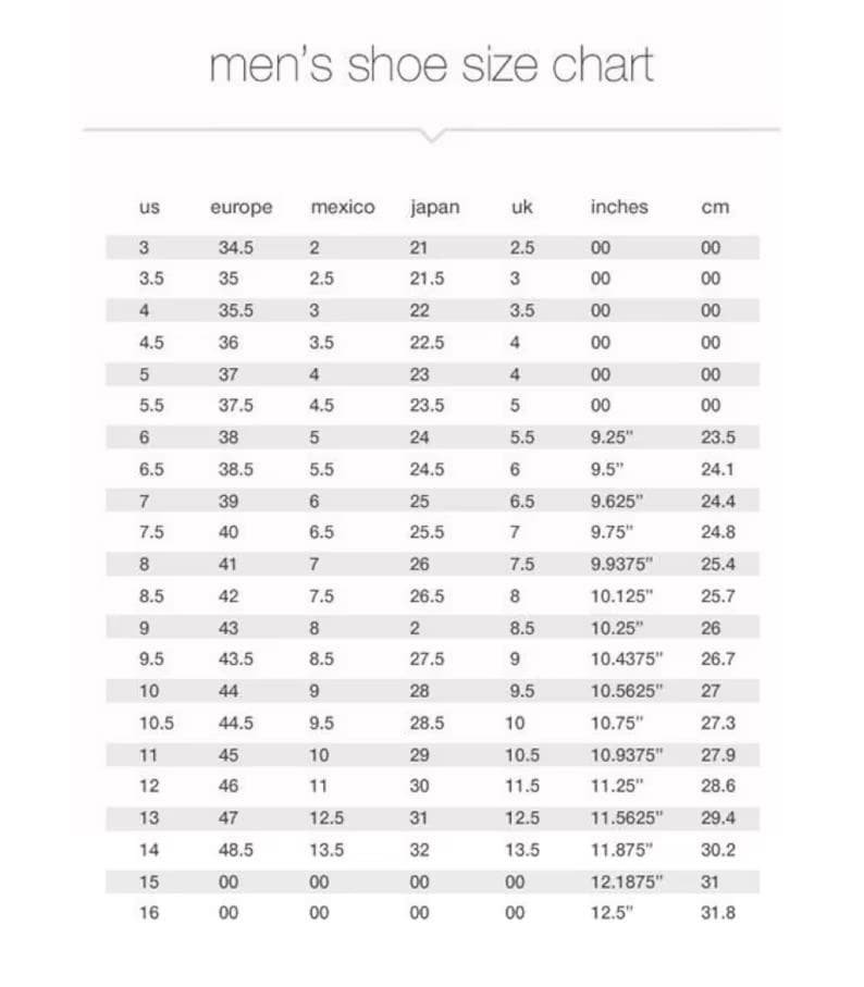 5 US men's ,5.5 US men's ,6 US men's ,6.5 US men's ,7 US men's ,7.5 US men's ,8 US men's ,8.5 US men's ,9 US men's ,9.5 US men's ,10 US men's ,10.5 US men's ,11 US men's ,11.5 US men's ,12 US men's ,12.5 US men's ,13 US men's ,13.5 US men's ,14 US men's ,14.5 US men's ,15 US men's ,15.5 US men's ,16 US men's ,Custom size US men's |