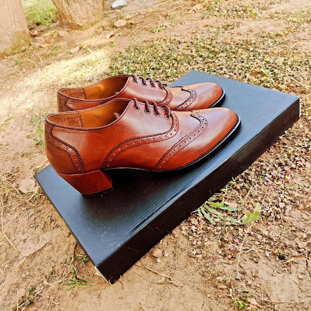 Handmade Brogue Oxford Shoes for Women – 3-Inch Heel | Classic Wingtip Leather Dress Shoes
